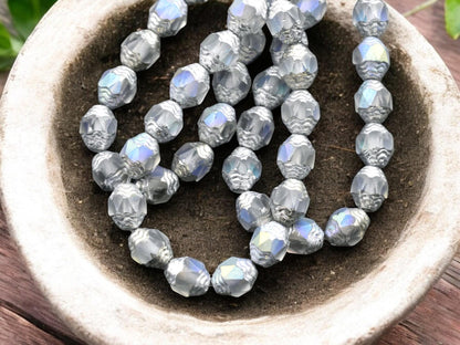 *15* 6x8mm Silver Washed Matte Crystal AB Oval Cathedral Beads