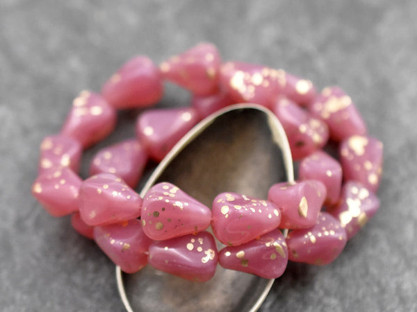*12* 13x12mm Antique Gold Washed Pink Opaline Vintage Style Drop Beads