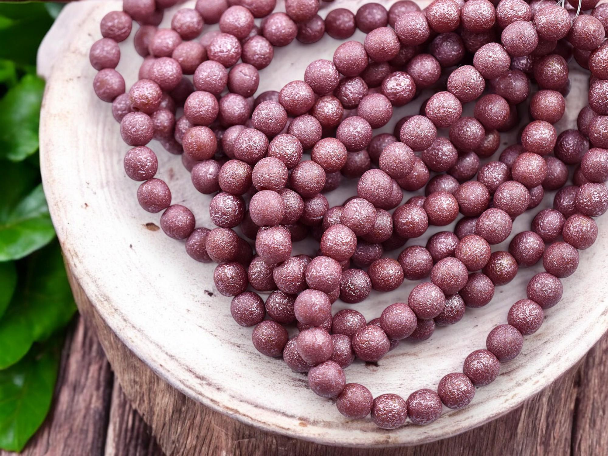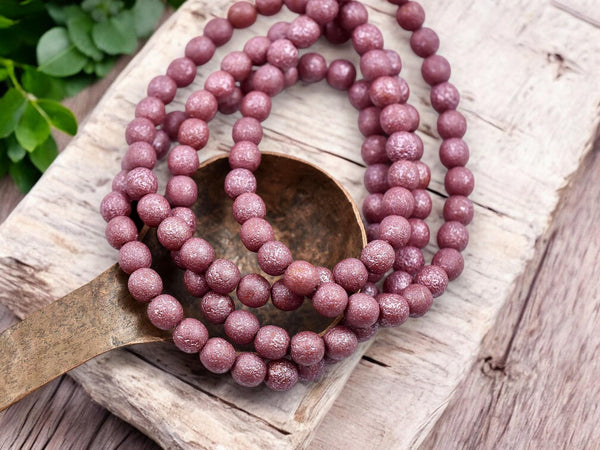 *30* 6mm Metallic Pink Washed Gold Lustered Red Round Druk Beads