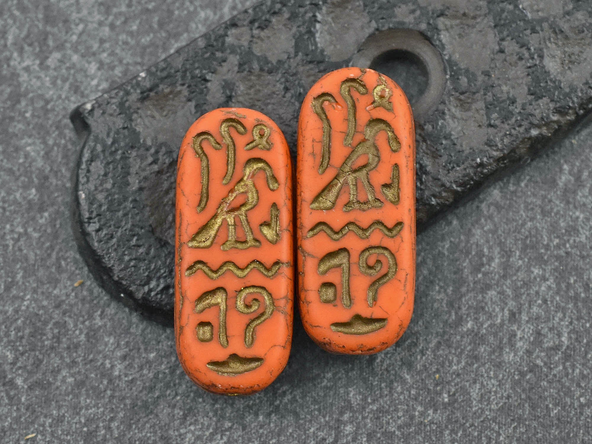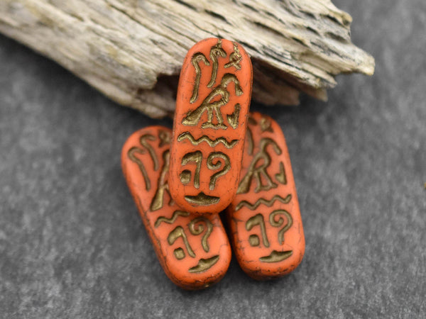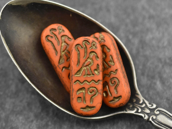 *6* 25x10mm Dark Bronze Washed Matte Orange Egyptian Cartouche Oval Beads