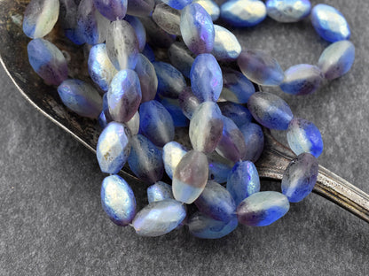 *12* 12x8mm Etched Sapphire Amethyst AB Faceted Fire Polished Oval Beads