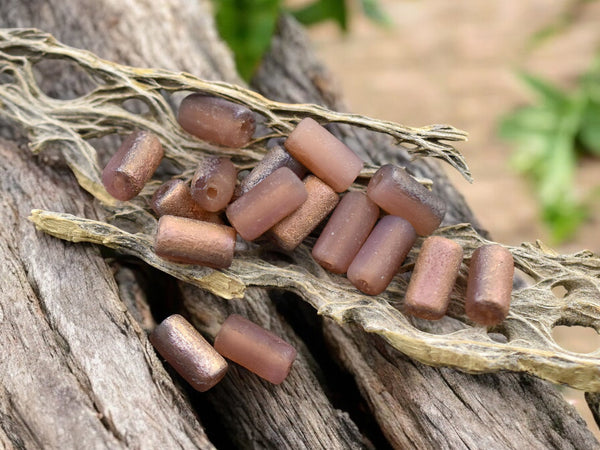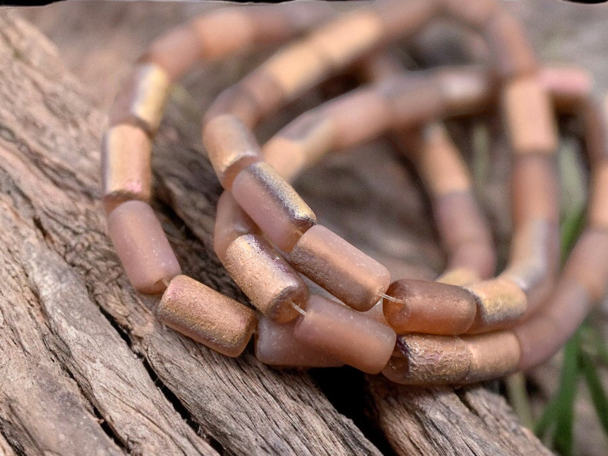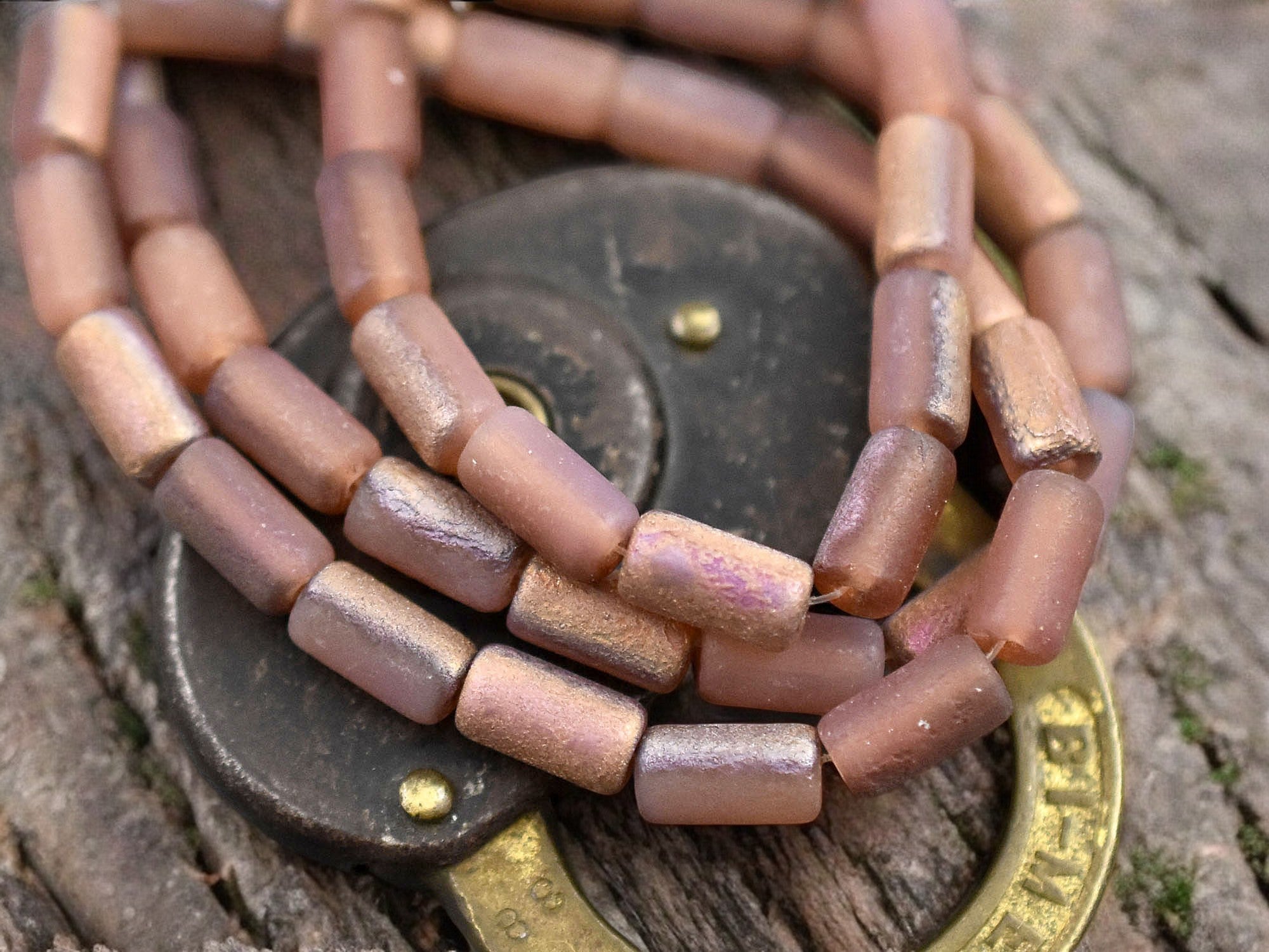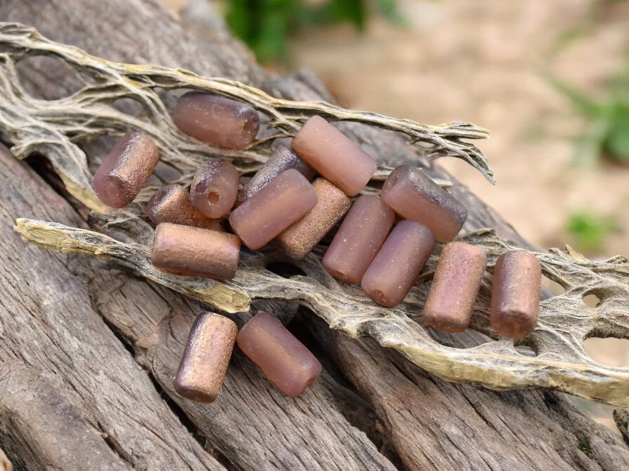 *16* 9x5mm Copper Washed Etched Salmon Tube Beads
