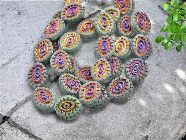 *10* 14x11mm Metallic Volcano Washed Opaque Matte Turquoise Mystic Eye Beads