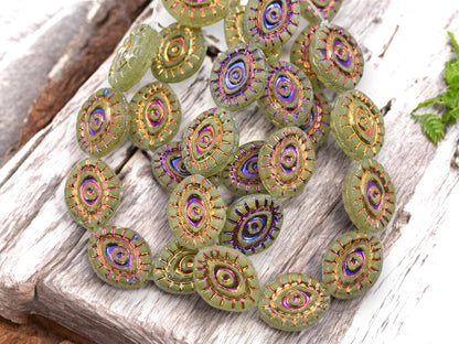 *10* 14x11mm Metallic Volcano Washed Matte Peridot Mystic Eye Beads