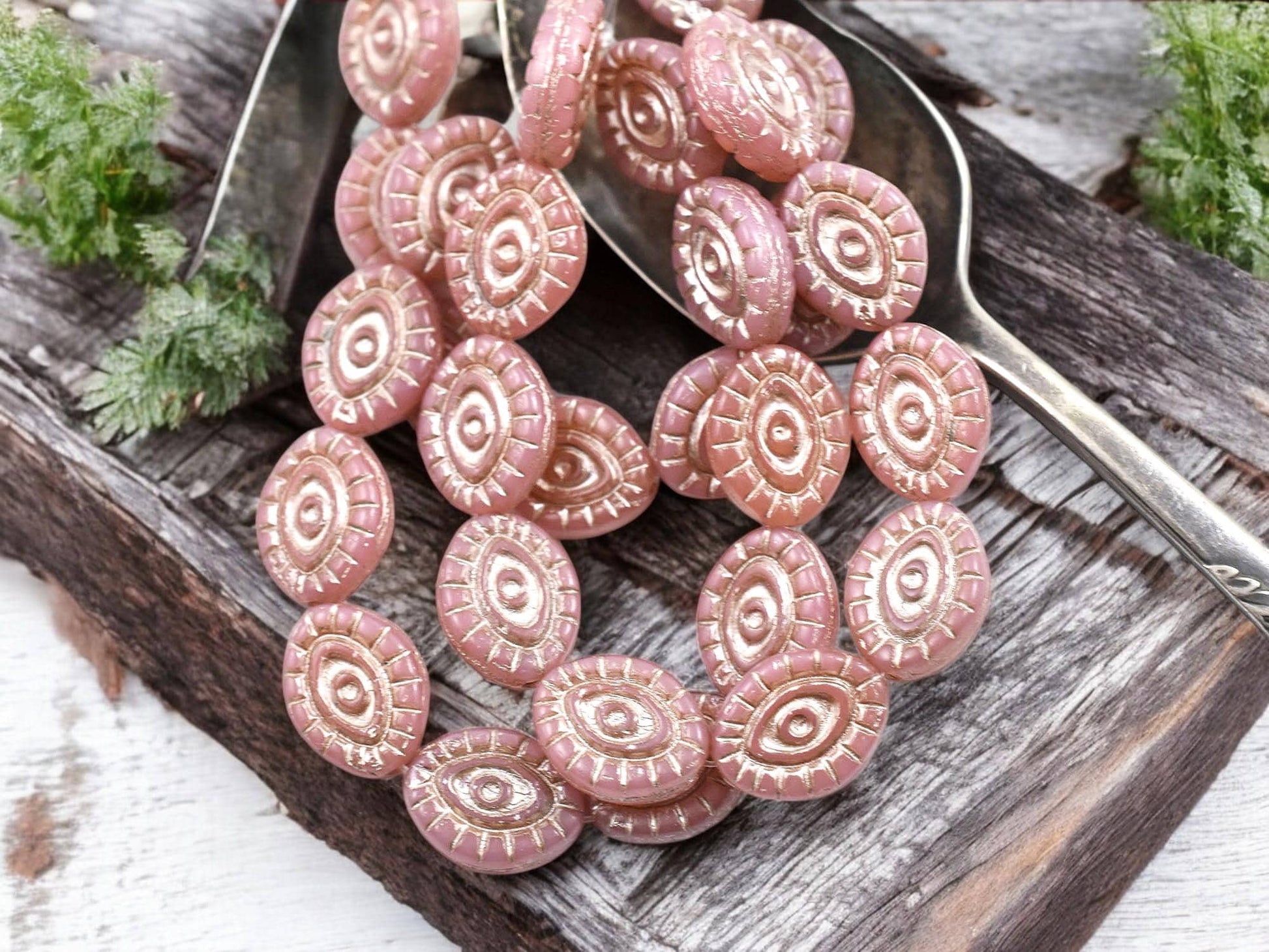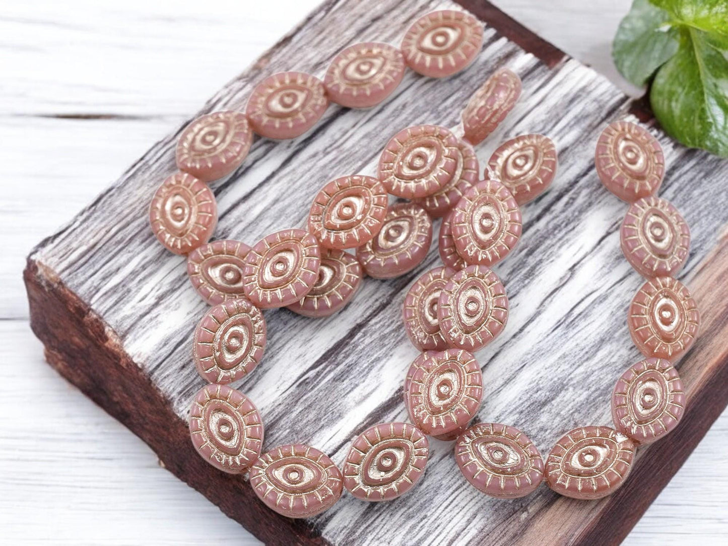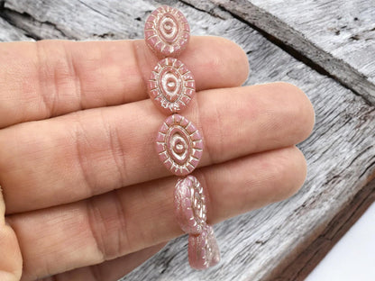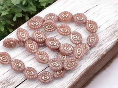 *10* 14x11mm Platinum Washed Dusty Pink Mystic Eye Beads