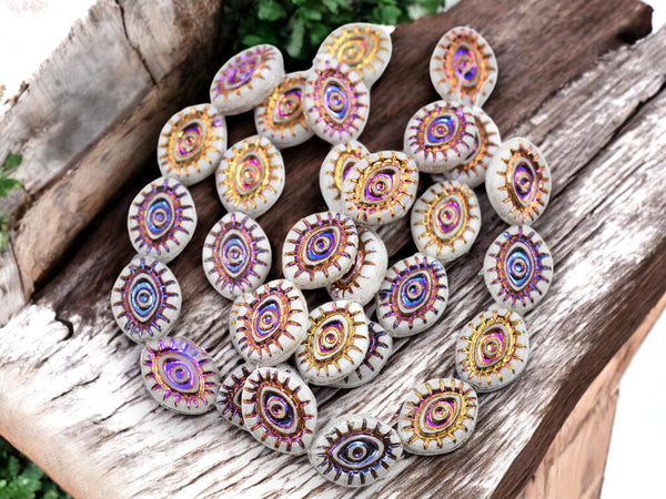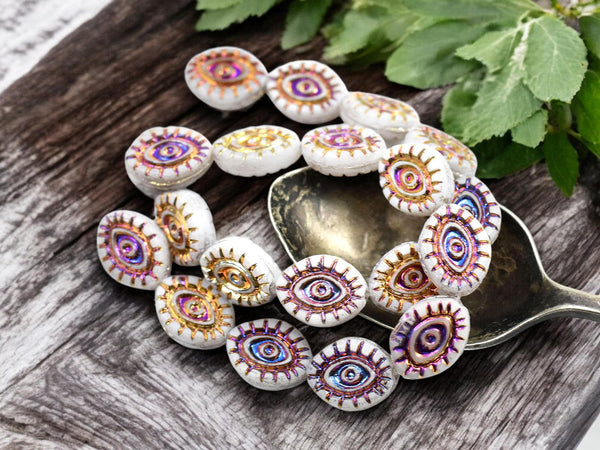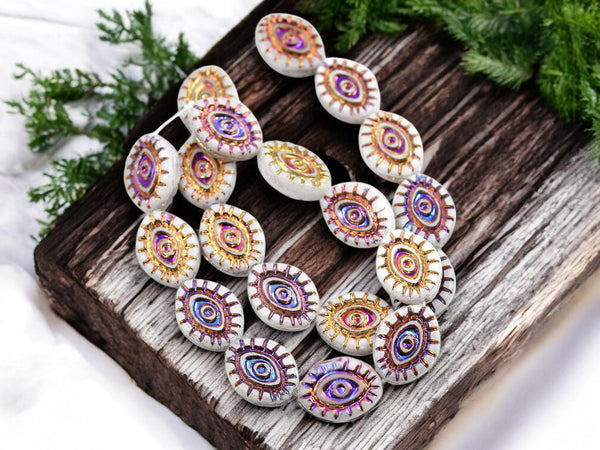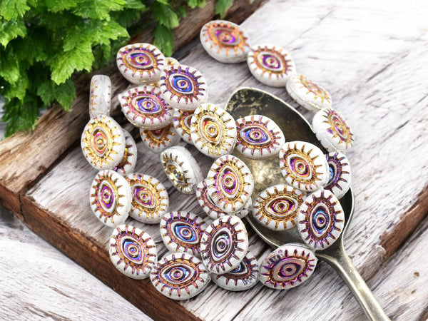 *10* 14x11mm Metallic Volcano Washed Matte White Mystic Eye Beads