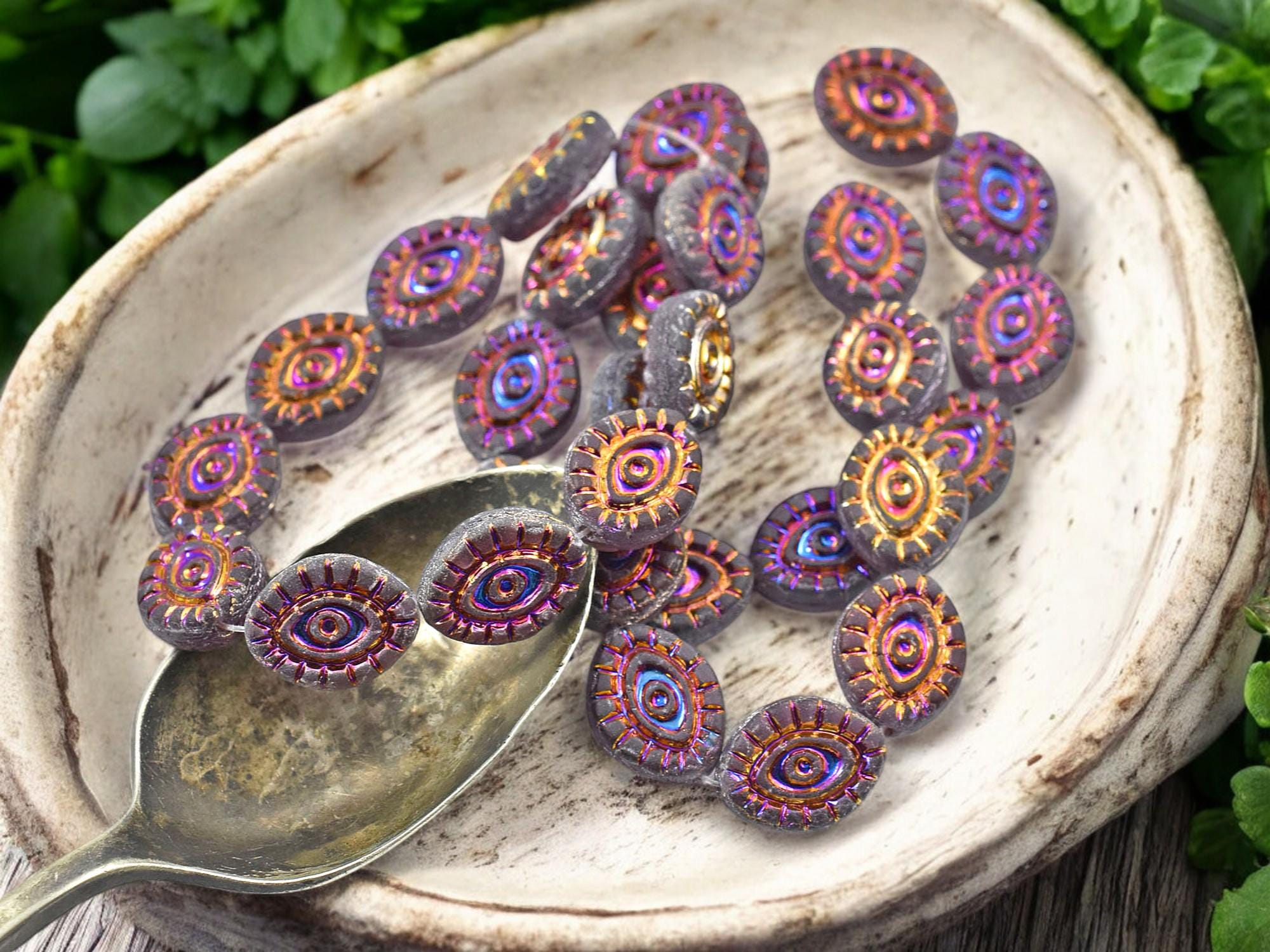 *10* 14x11mm Metallic Volano Washed Matte Transparent Purple Mystic Eye Beads