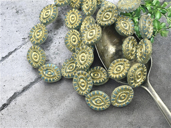 *10* 14x11mm Gold Washed Matte Aqua Mystic Eye Beads