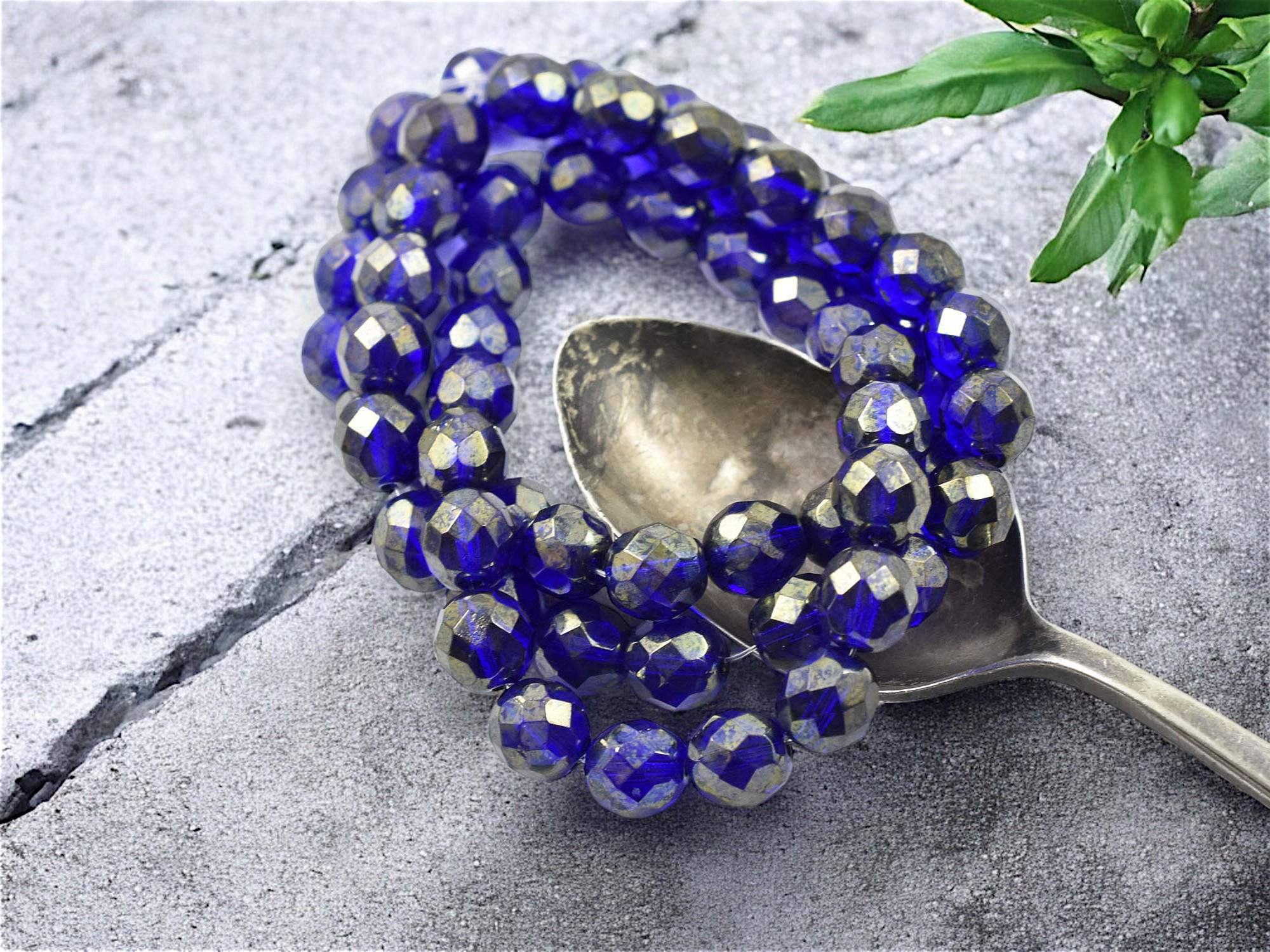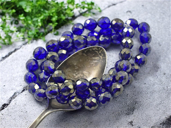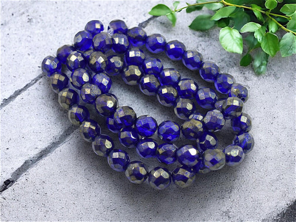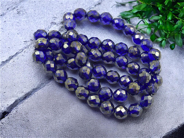 *20* 8mm Gold Lustered Cobalt Fire Polished Round Beads
