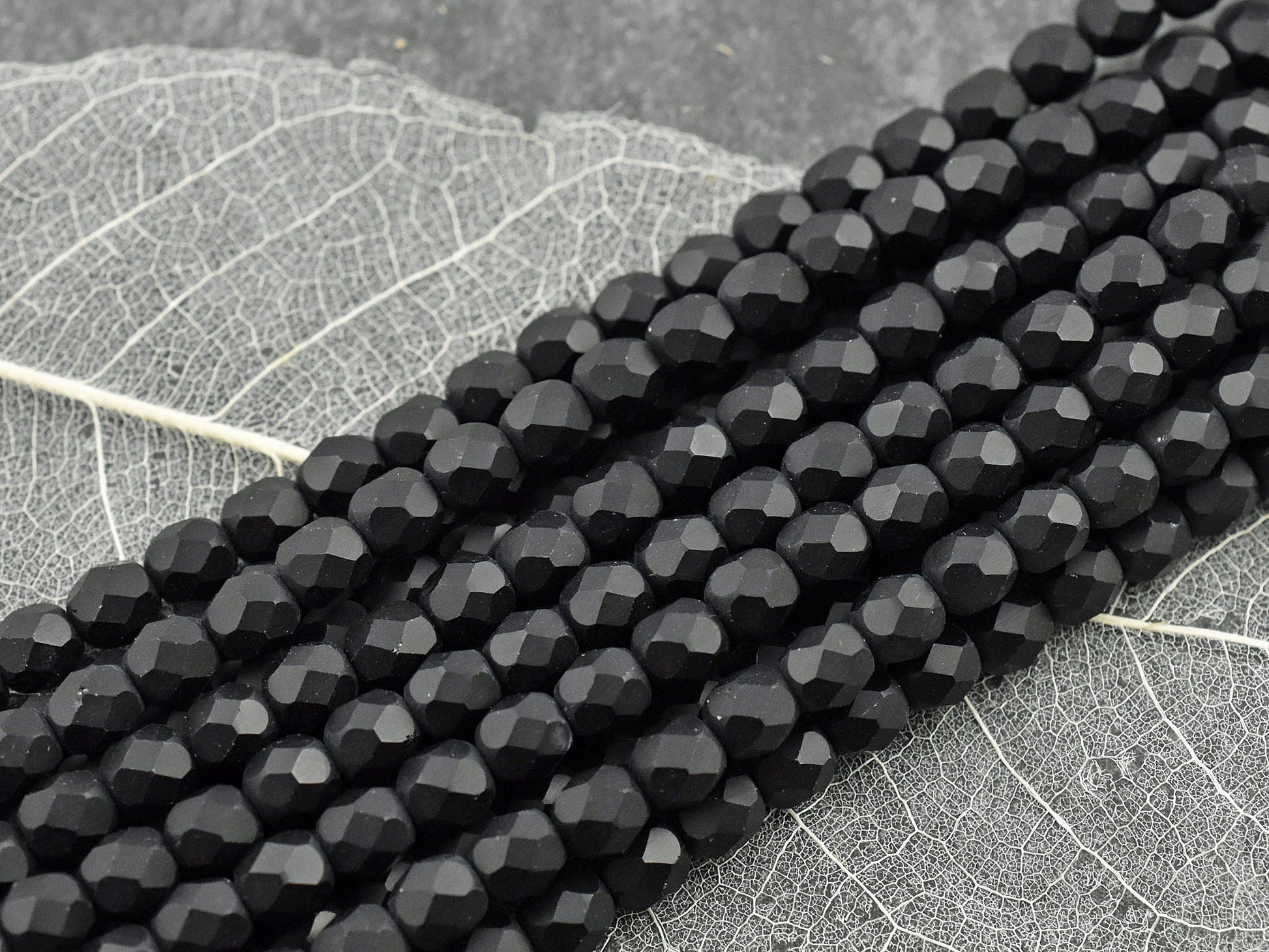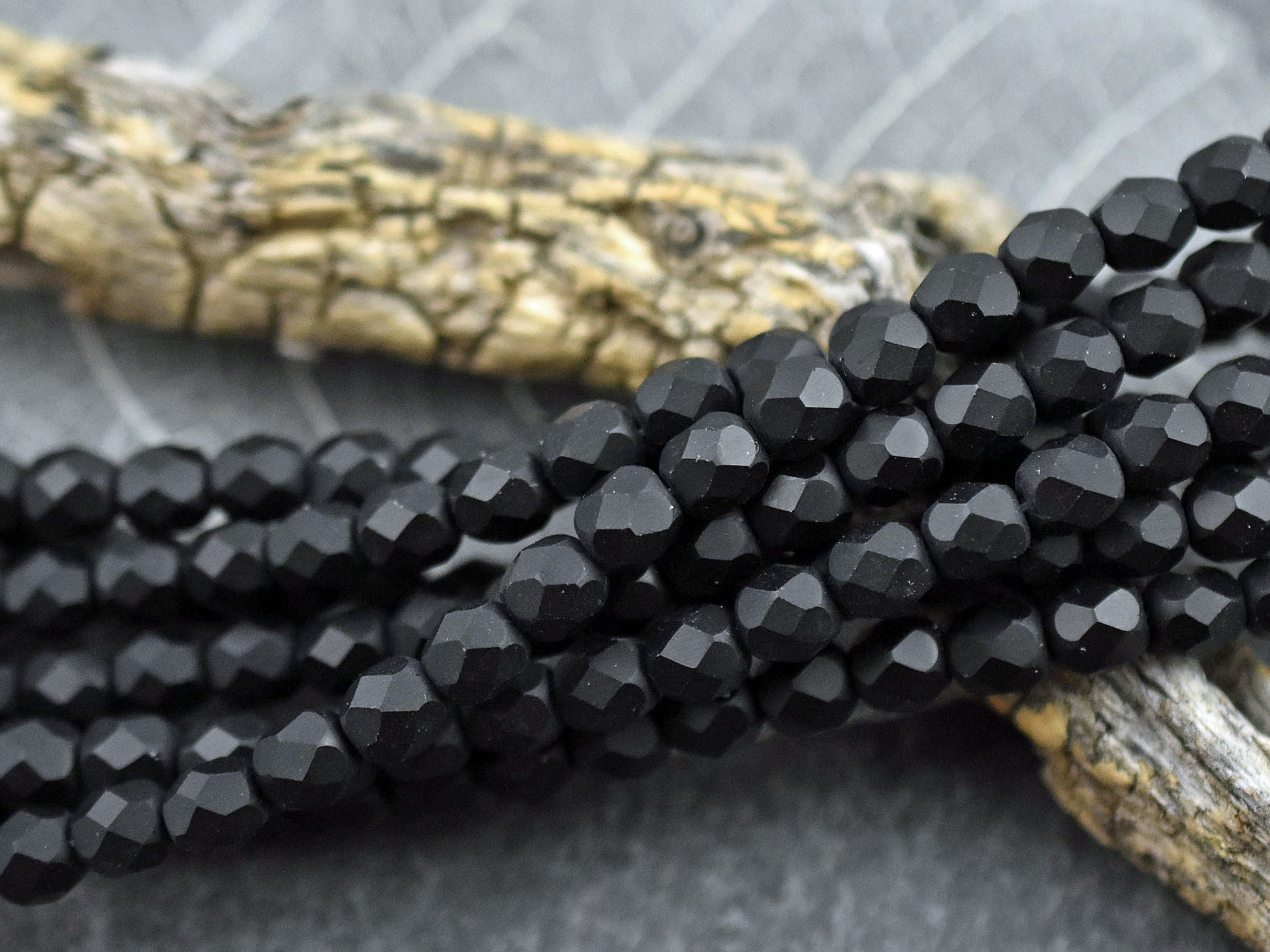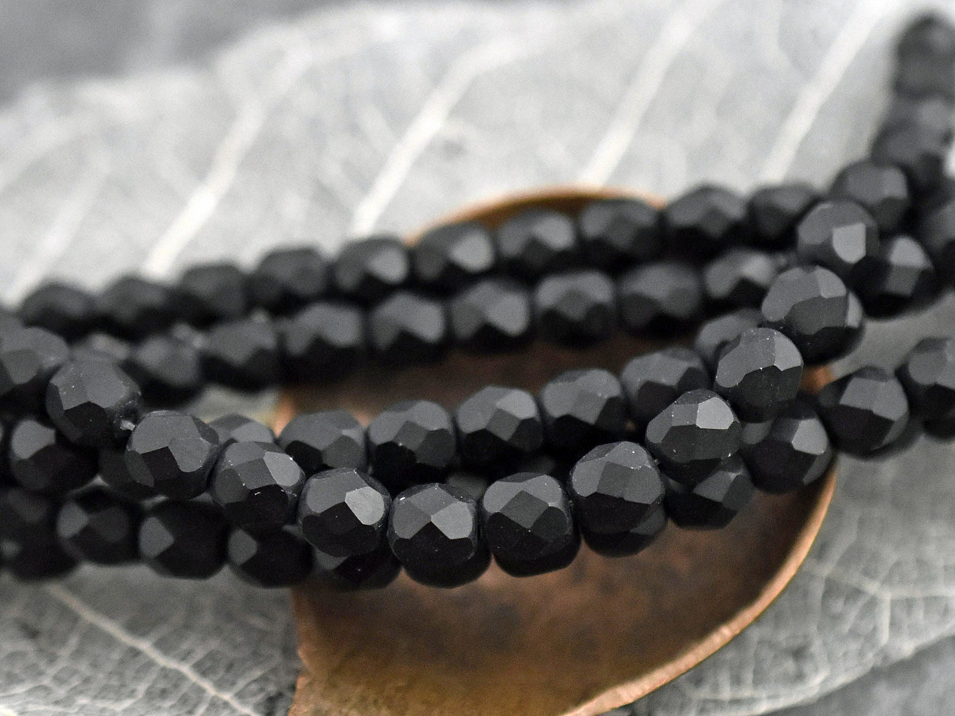 *25* 6mm Matte Jet Black Fire Polished Round Beads