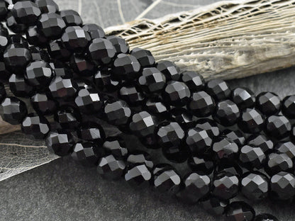 *16* 8mm Opaque Jet Black Fire Polished Round Beads