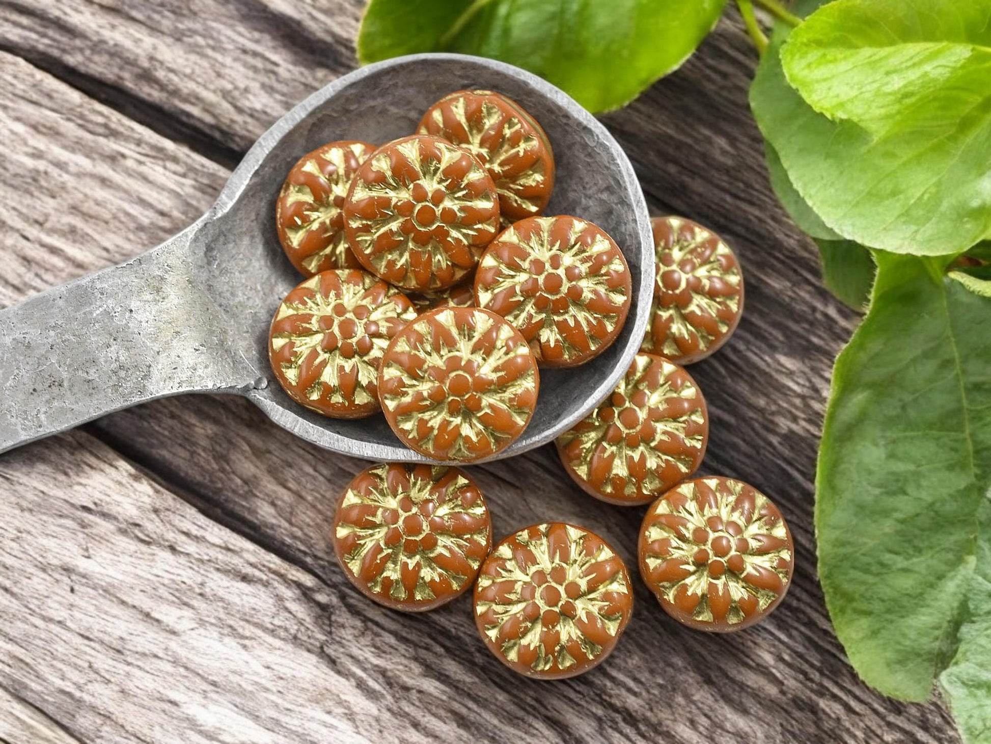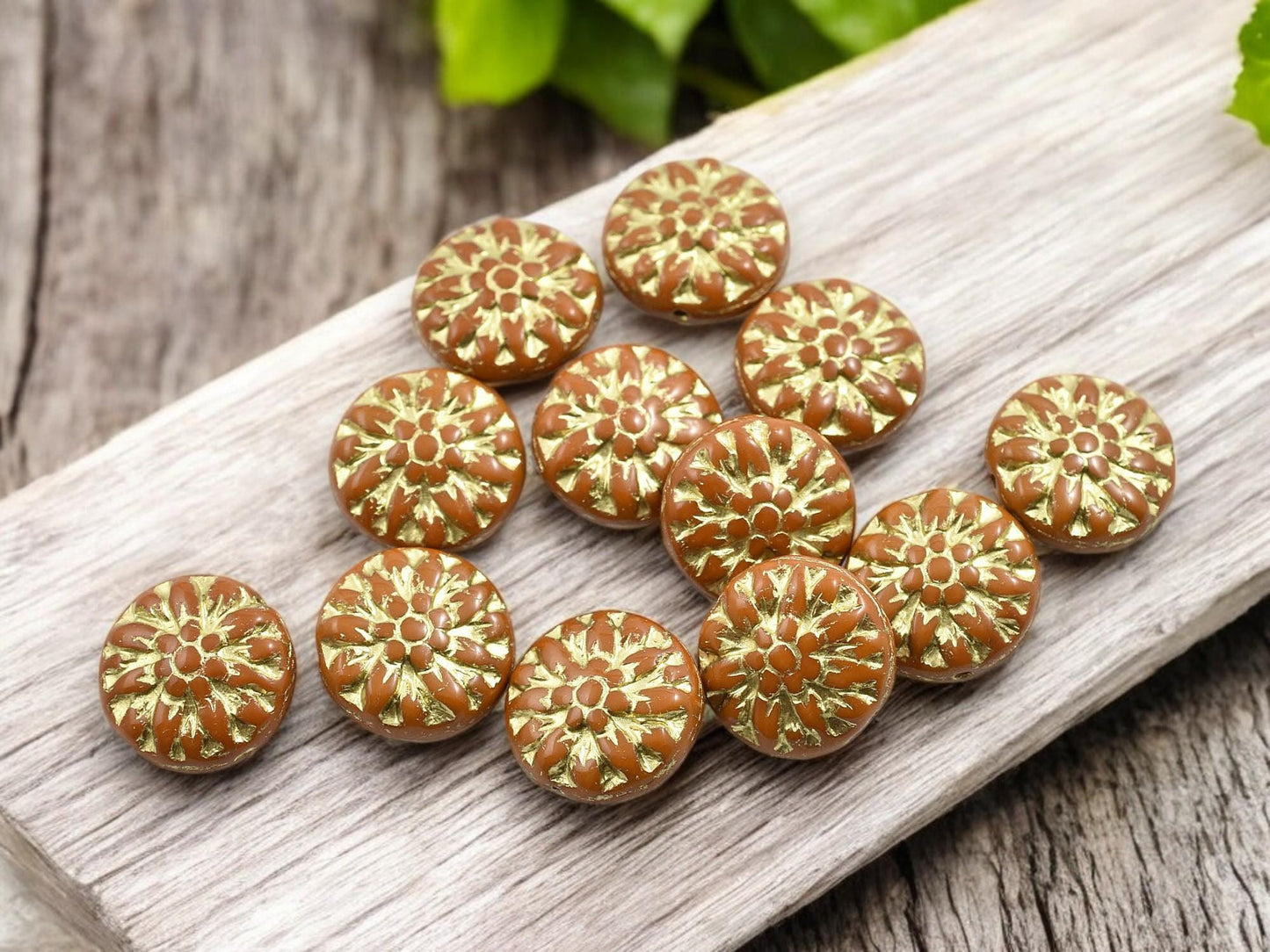 *12* 15mm Gold Washed Ochre Orange Dahlia Flower Coin Beads