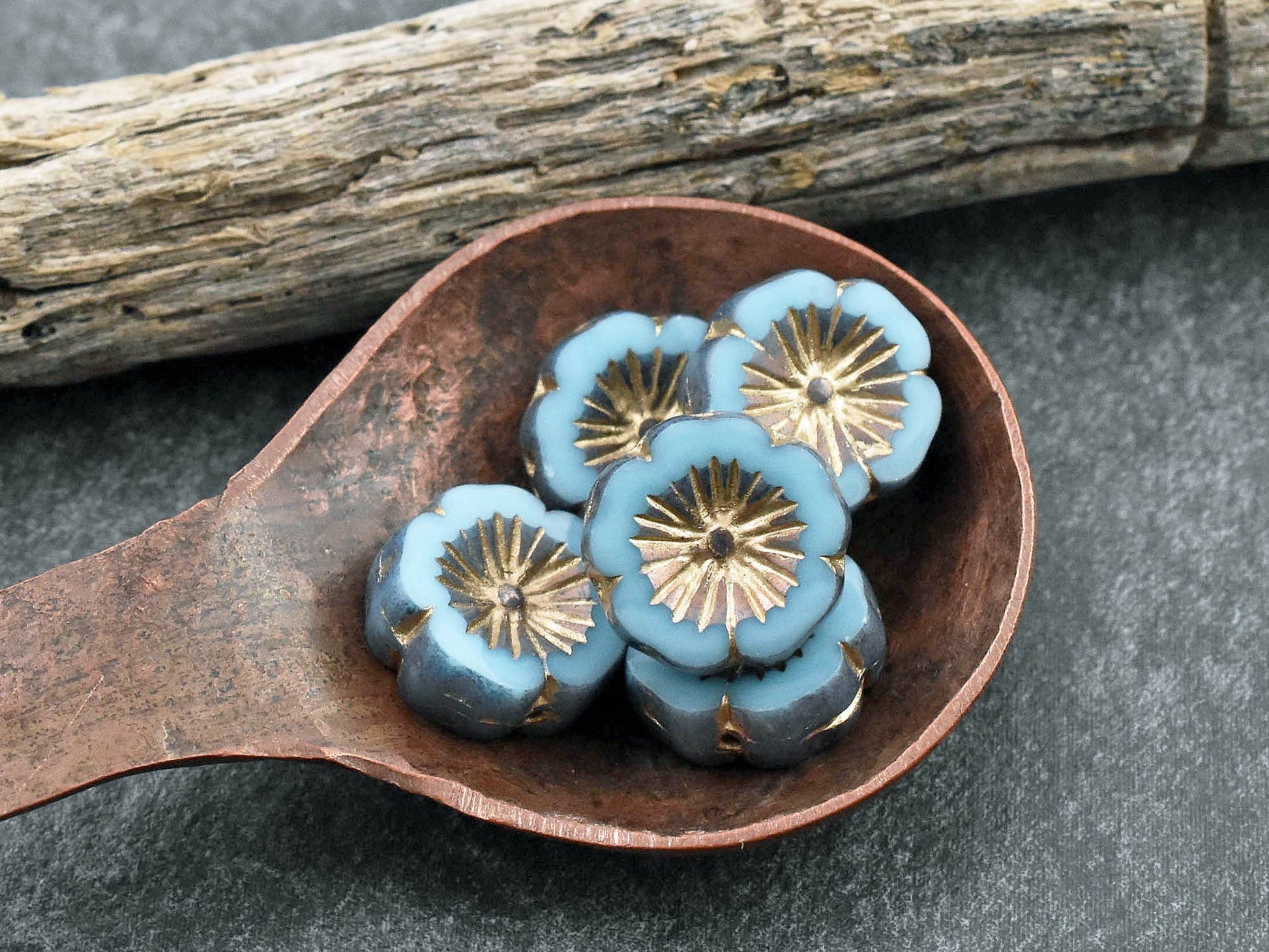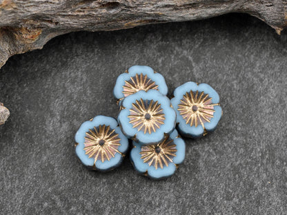 *10* 14mm Bronze & Gold Washed Sky Blue Table Cut Hawaiian Flower Beads
