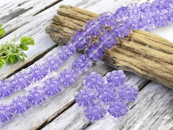 *16* 11mm Purple Washed Crystal Square Zinnia Flower Beads
