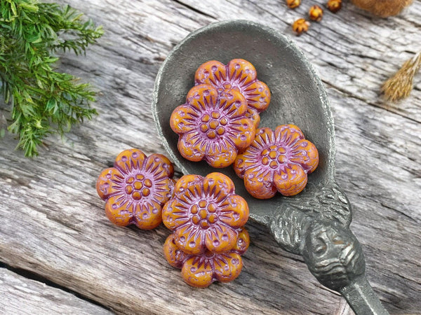 *12* 14mm Metallic Pink Washed Opaque Orange Wildflower Beads