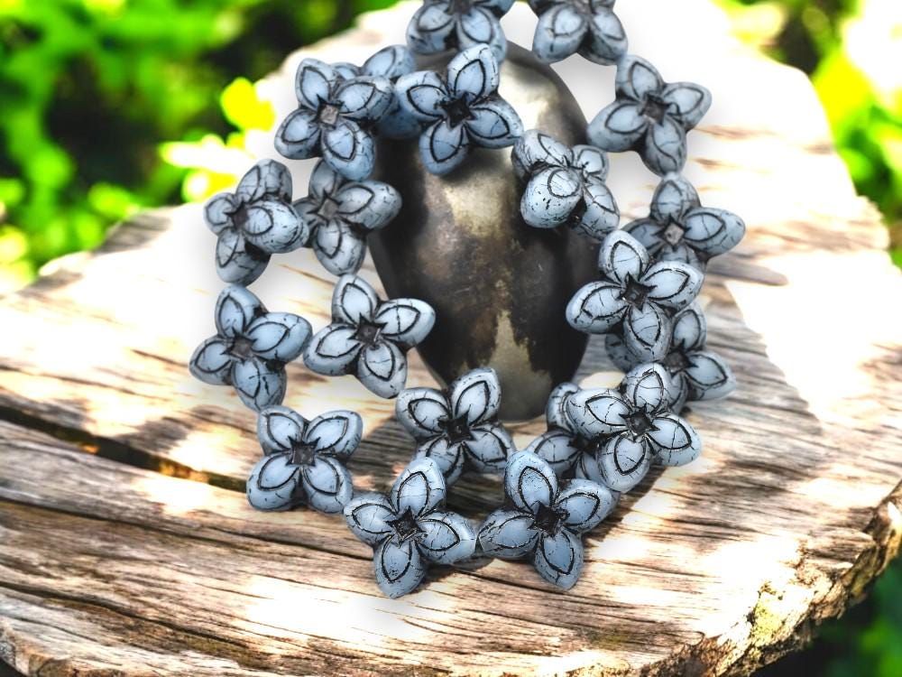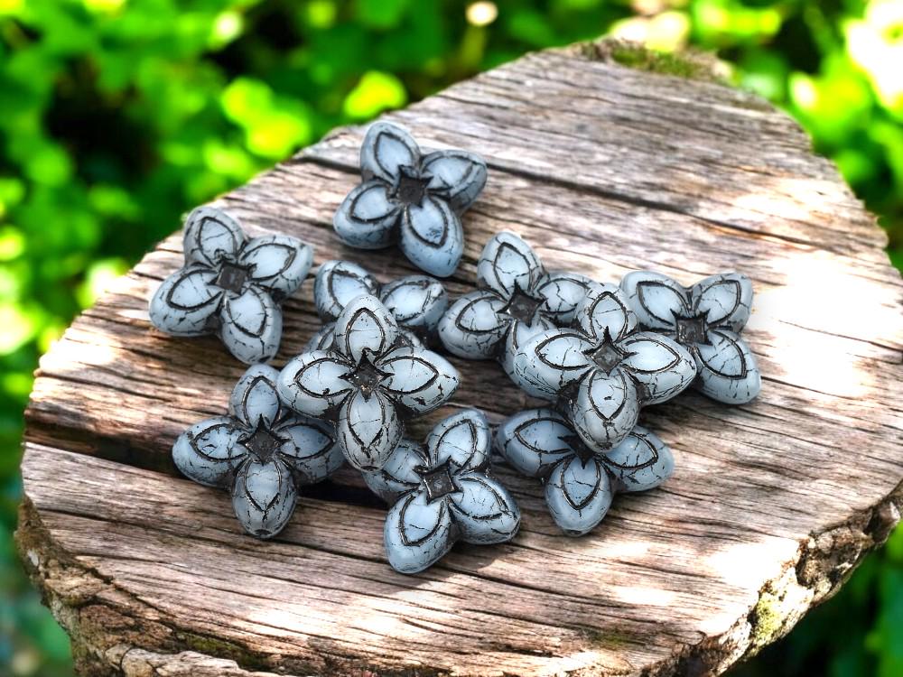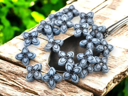 *10* 17mm Black Washed Matte Blue Silk 4 Petal Lily Flower Beads