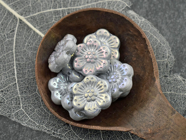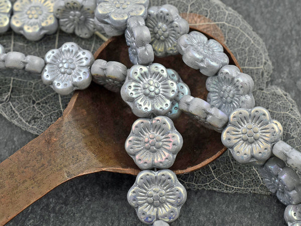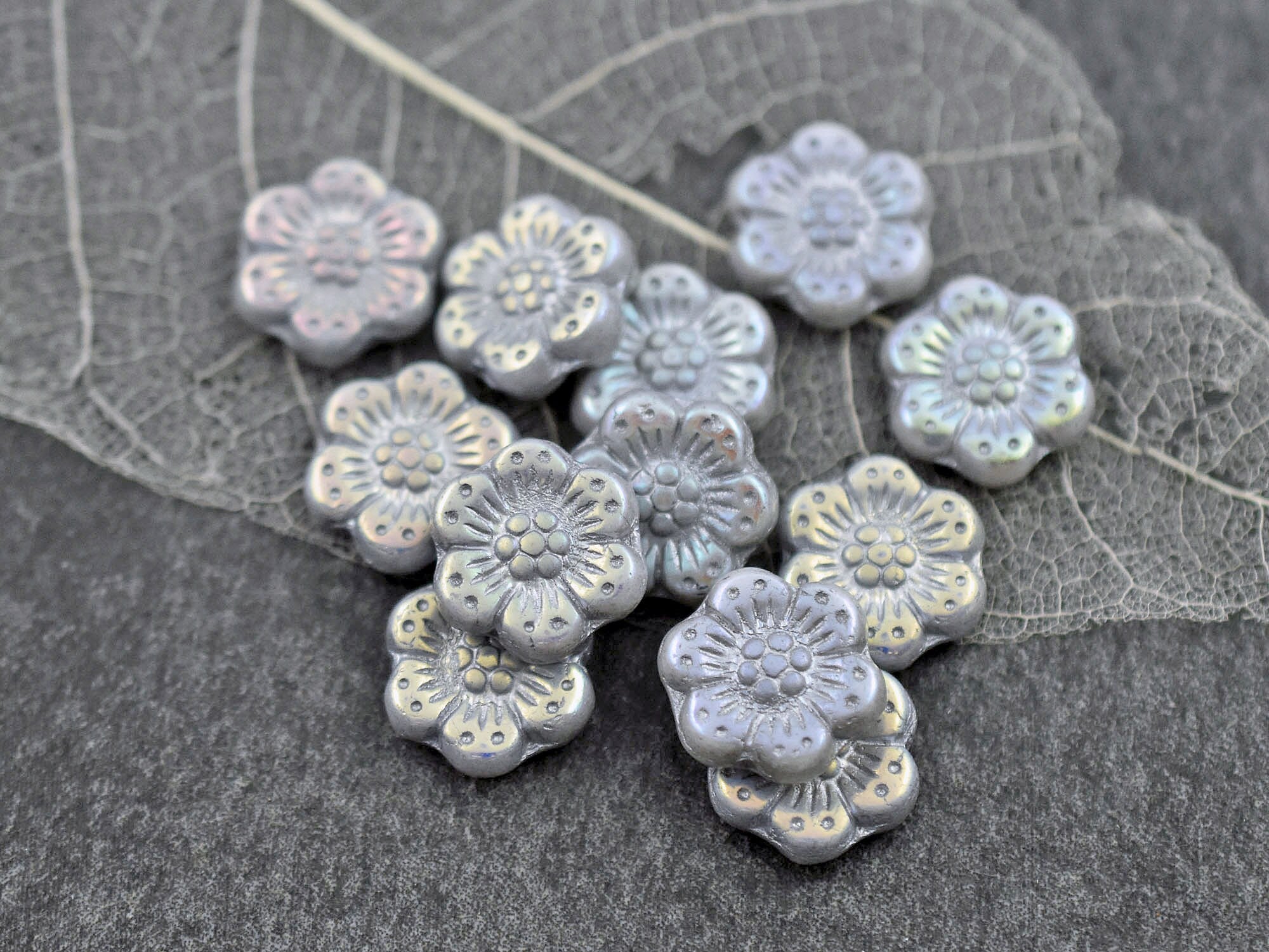 *12* 14mm Grey Washed Opaque Grey AB Wildflower Beads
