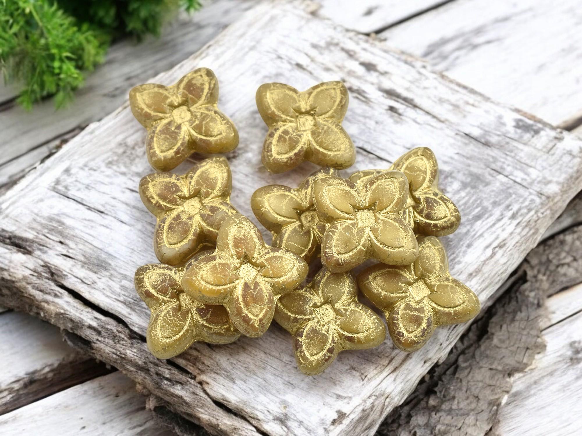 *10* 17mm Bronze Washed Matte Semi Translucent Honey 4 Petal Lily Flower Beads