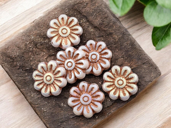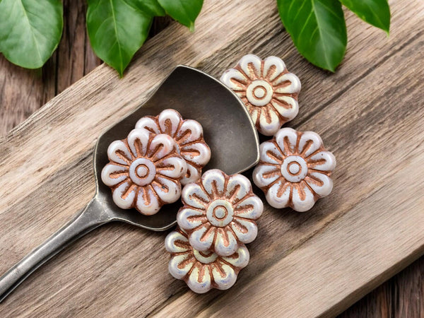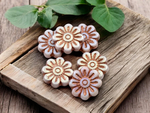*6* 18mm Copper Washed Blended Pink & White Daisy Flower Beads