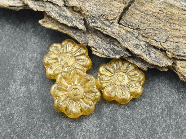 *6* 18mm Gold Wash Yellow Topaz Daisy Flower Beads