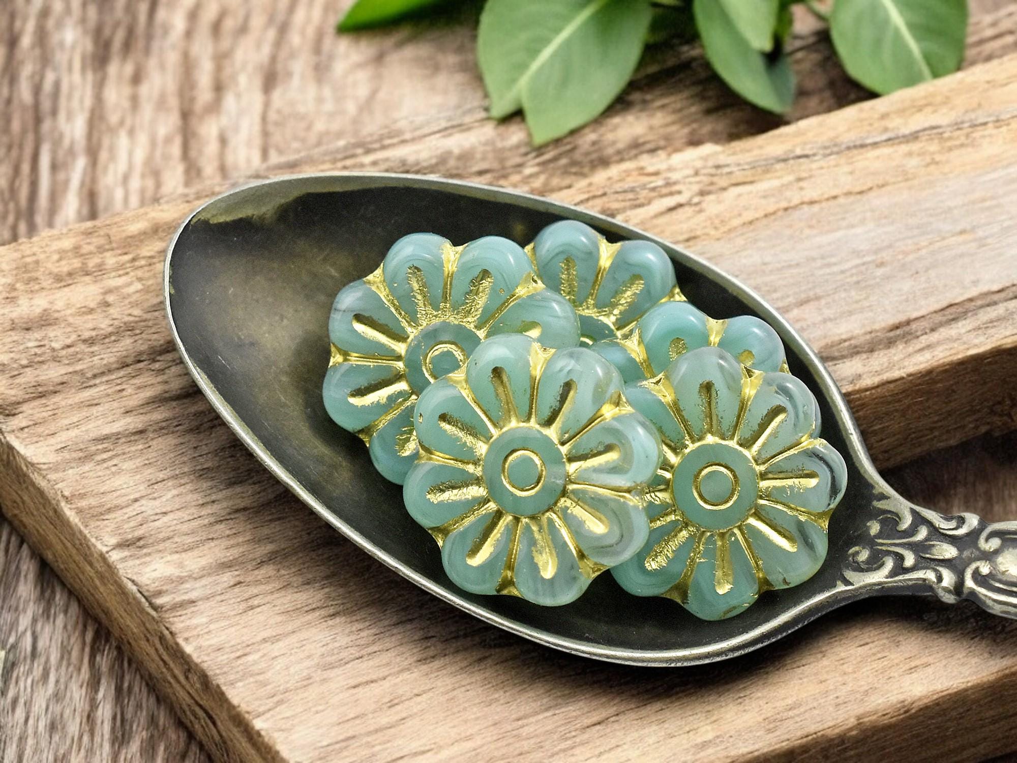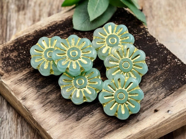 *6* 18mm Gold Washed Aqua Opaline Daisy Flower Beads