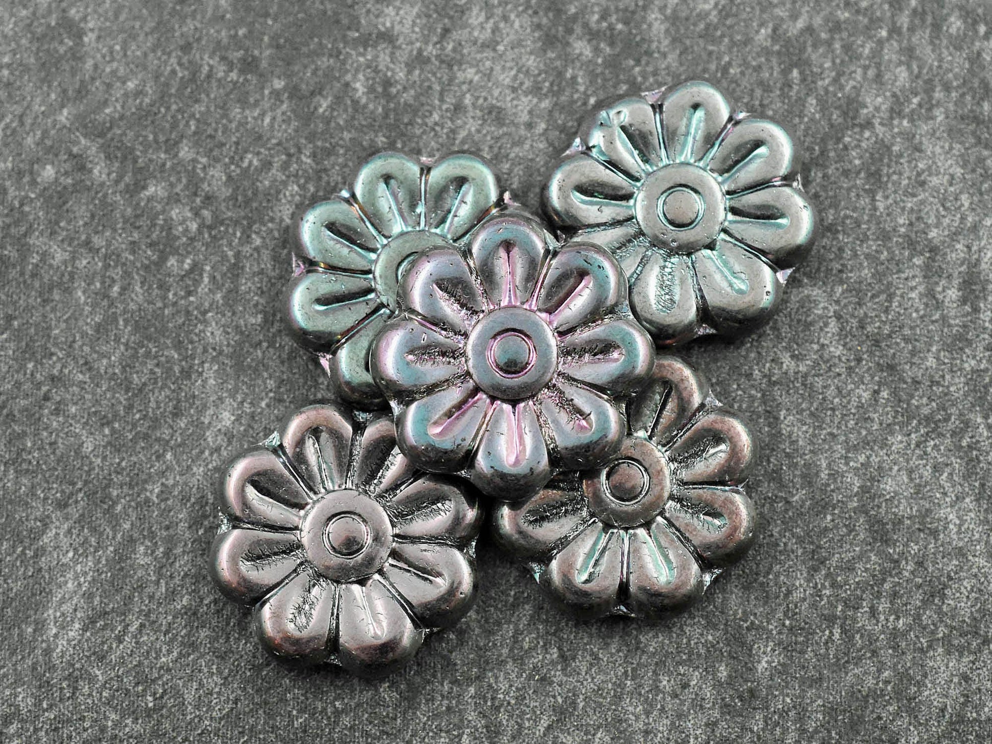 *6* 18mm Metallic Purple Iris Daisy Flower Beads