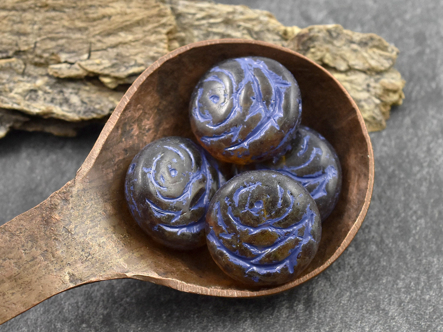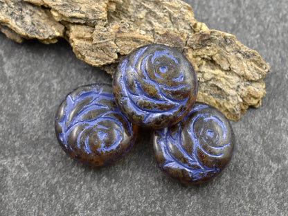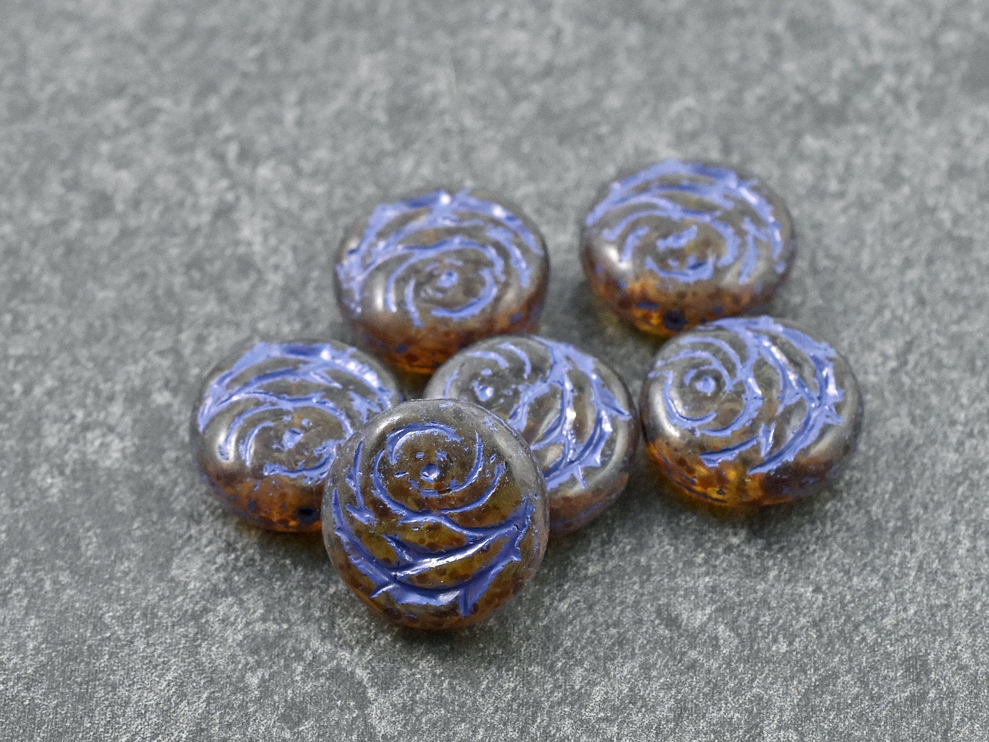 *6* 17mm Purple Washed Dark Topaz Rose Coin Beads