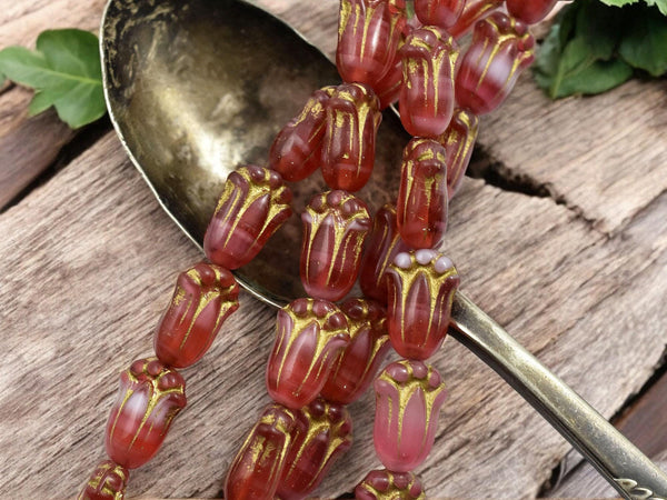 *12* 12x8mm Bronze Washed Blended Cranberry Tulip Beads