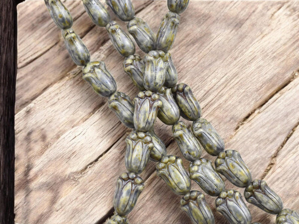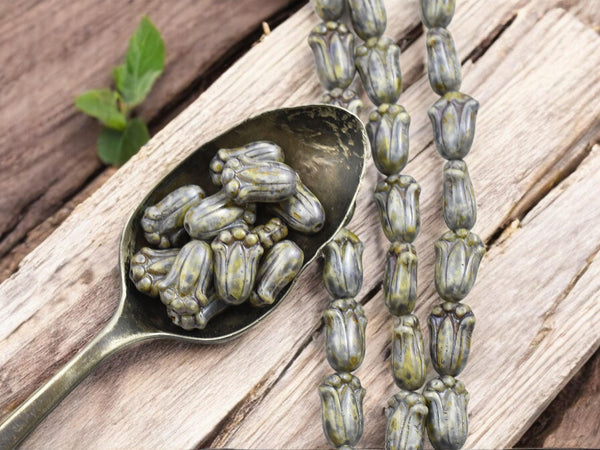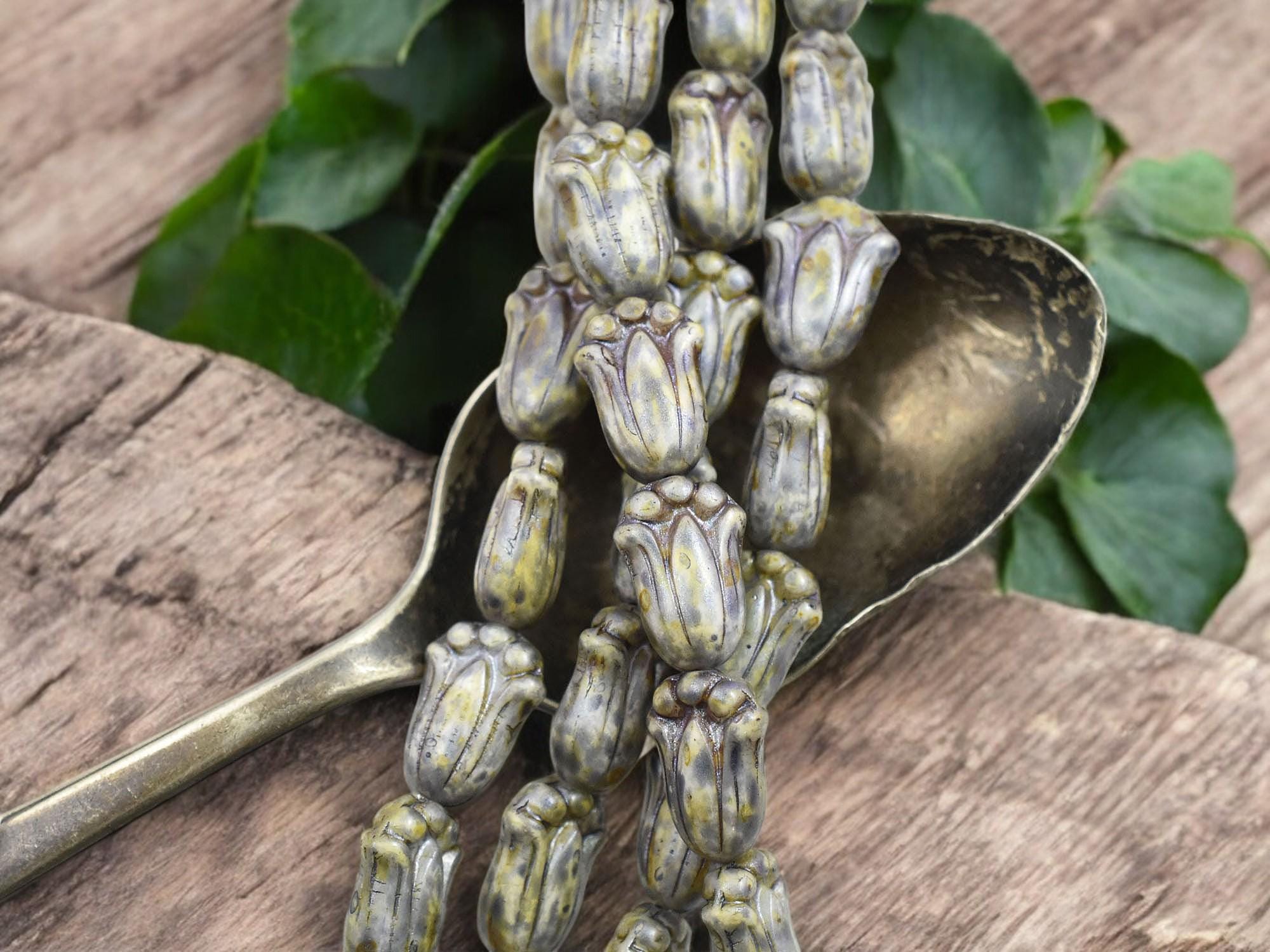 *12* 12x8mm Alabaster Silver Shade Picasso Tulip Beads