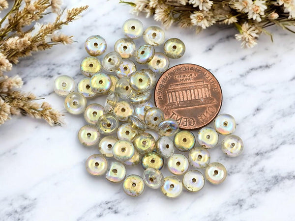*50* 6x2mm Gold Washed Crystal AB Smooth Rondelle Beads