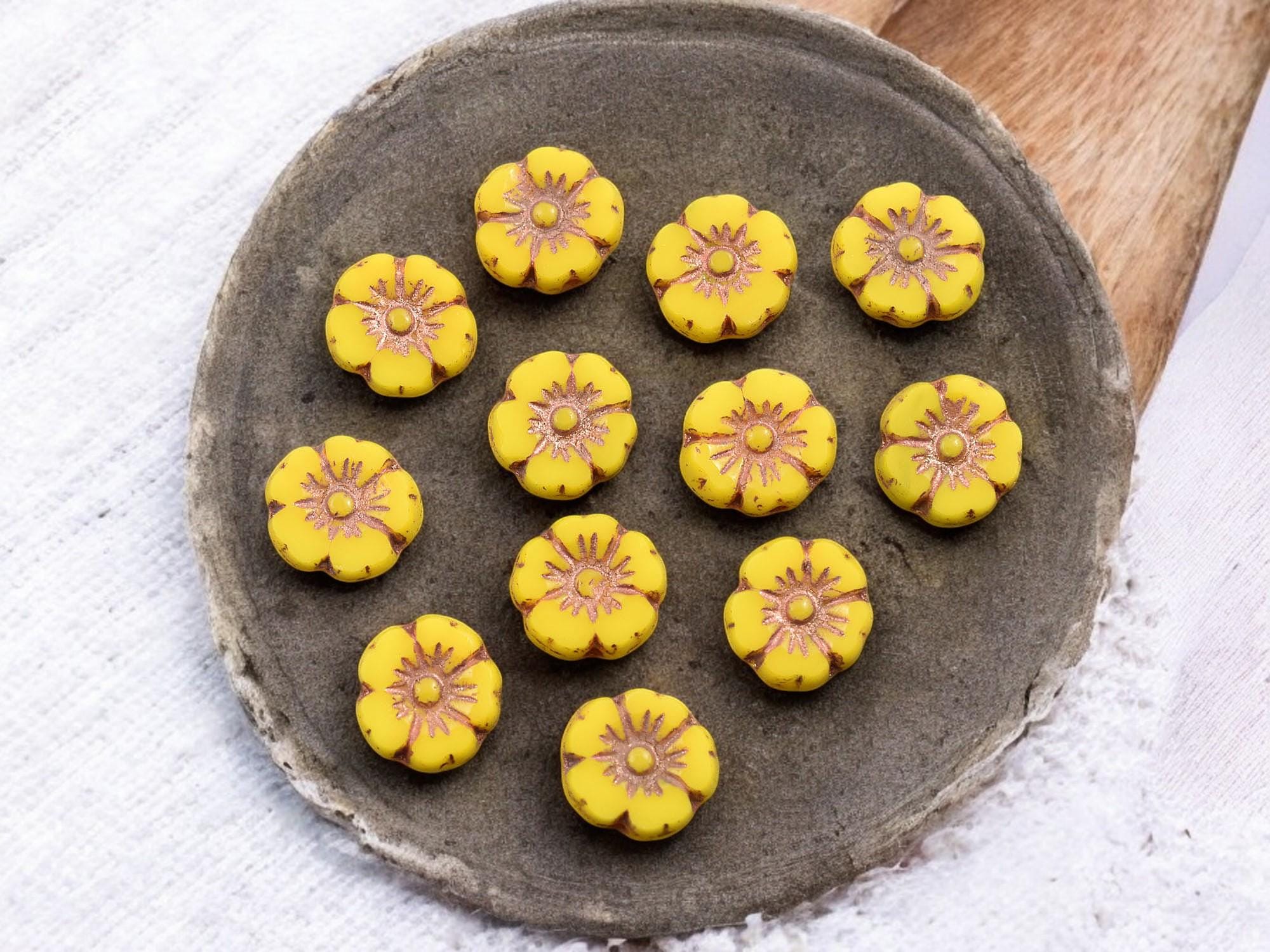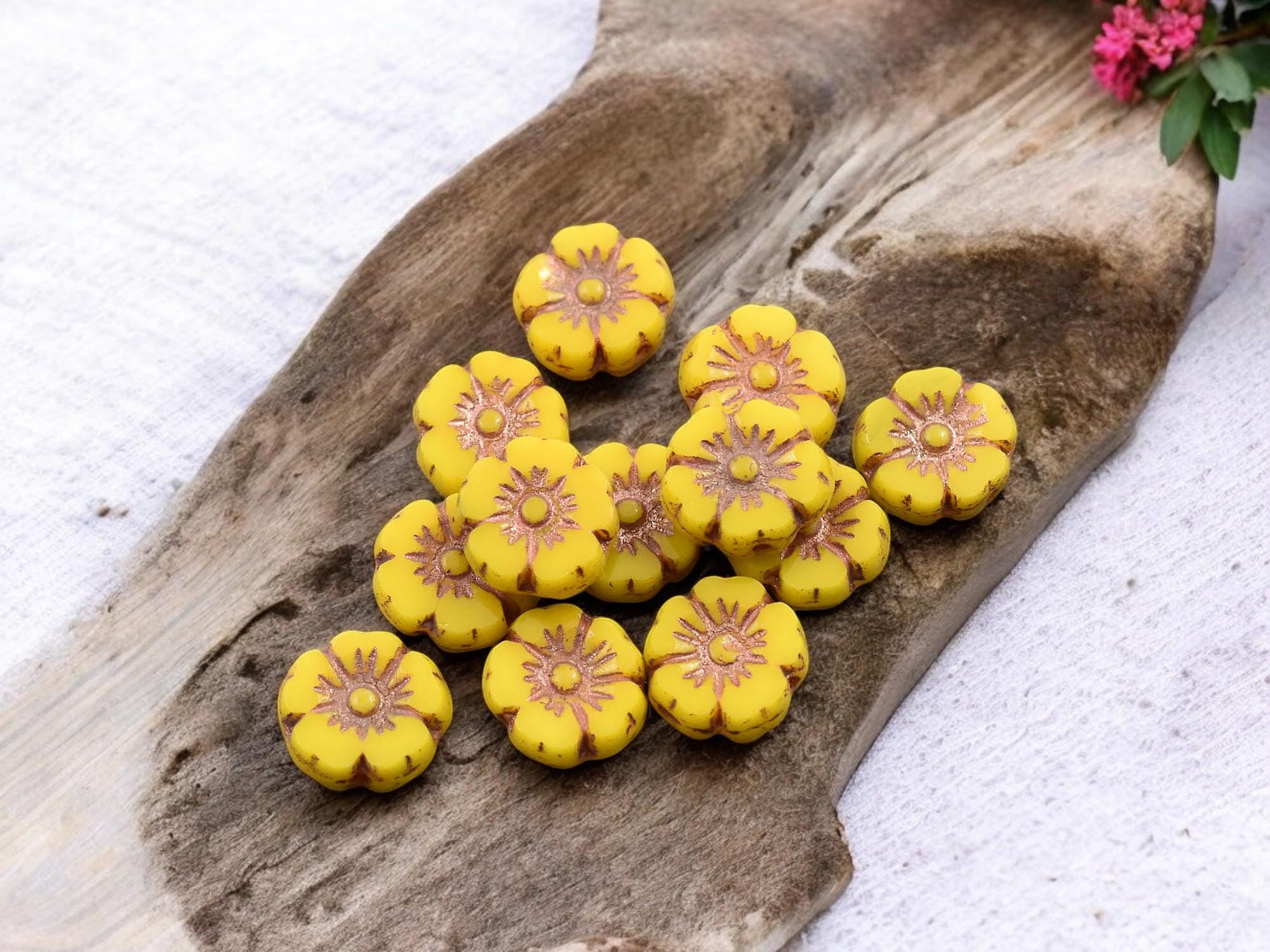 *12* 10mm Copper Washed Opaque Marigold Hawaiian Flower Beads