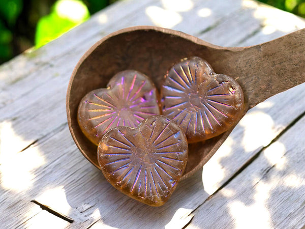 *4* 22mm Matte Golden Topaz Sliperit Heart Beads
