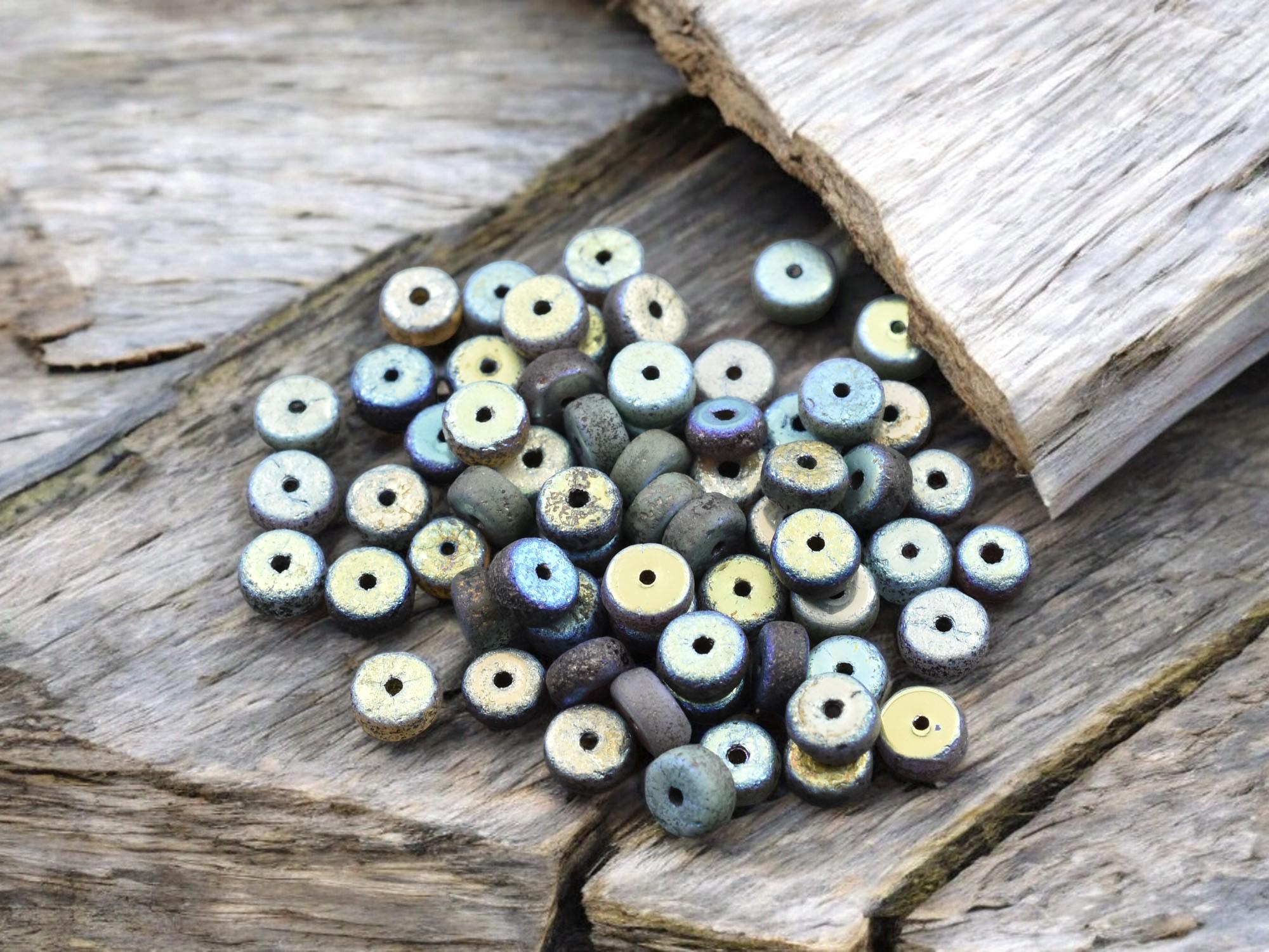 *50* 6x3mm Gold Washed Etched Mixed Heishi Beads