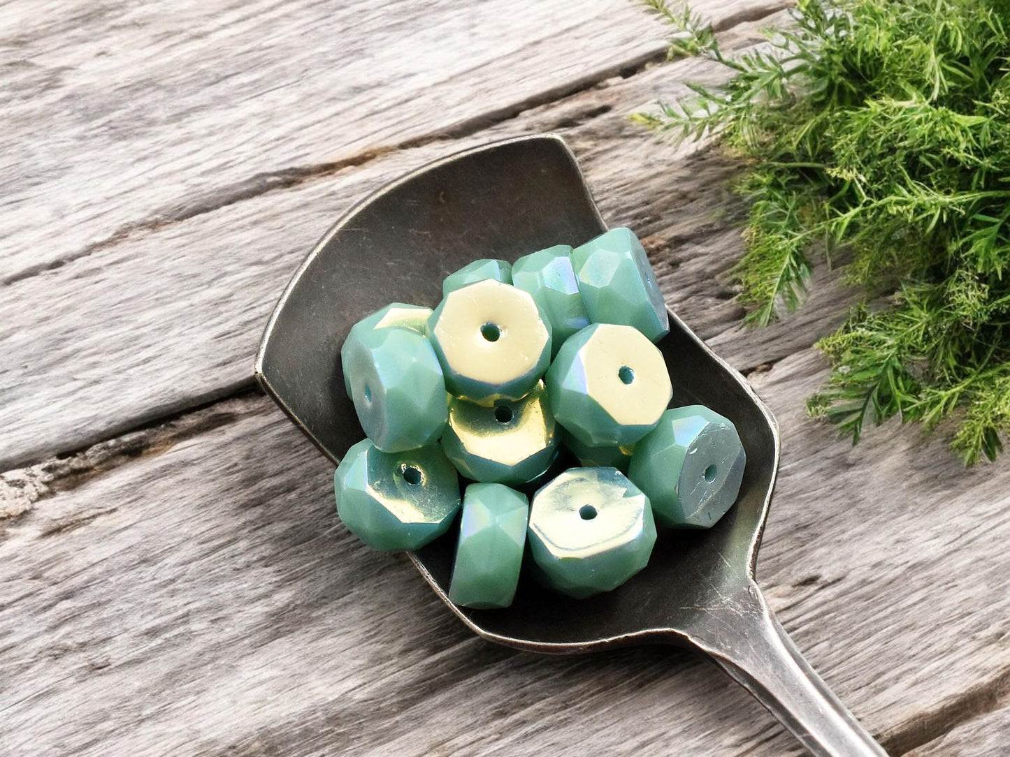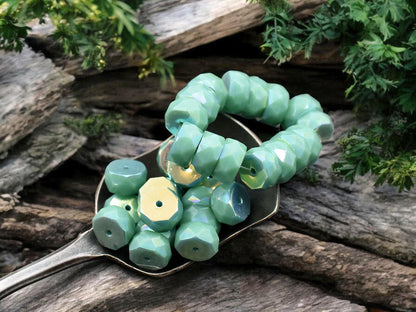 *15* 4x6mm Opaque Turquoise AB Fire Polished Rondelle Heishi Beads