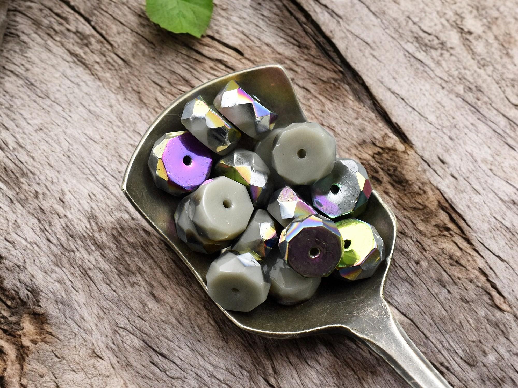 *15* 4x6mm Opaque Gray AB Fire Polished Rondelle Heishi Beads