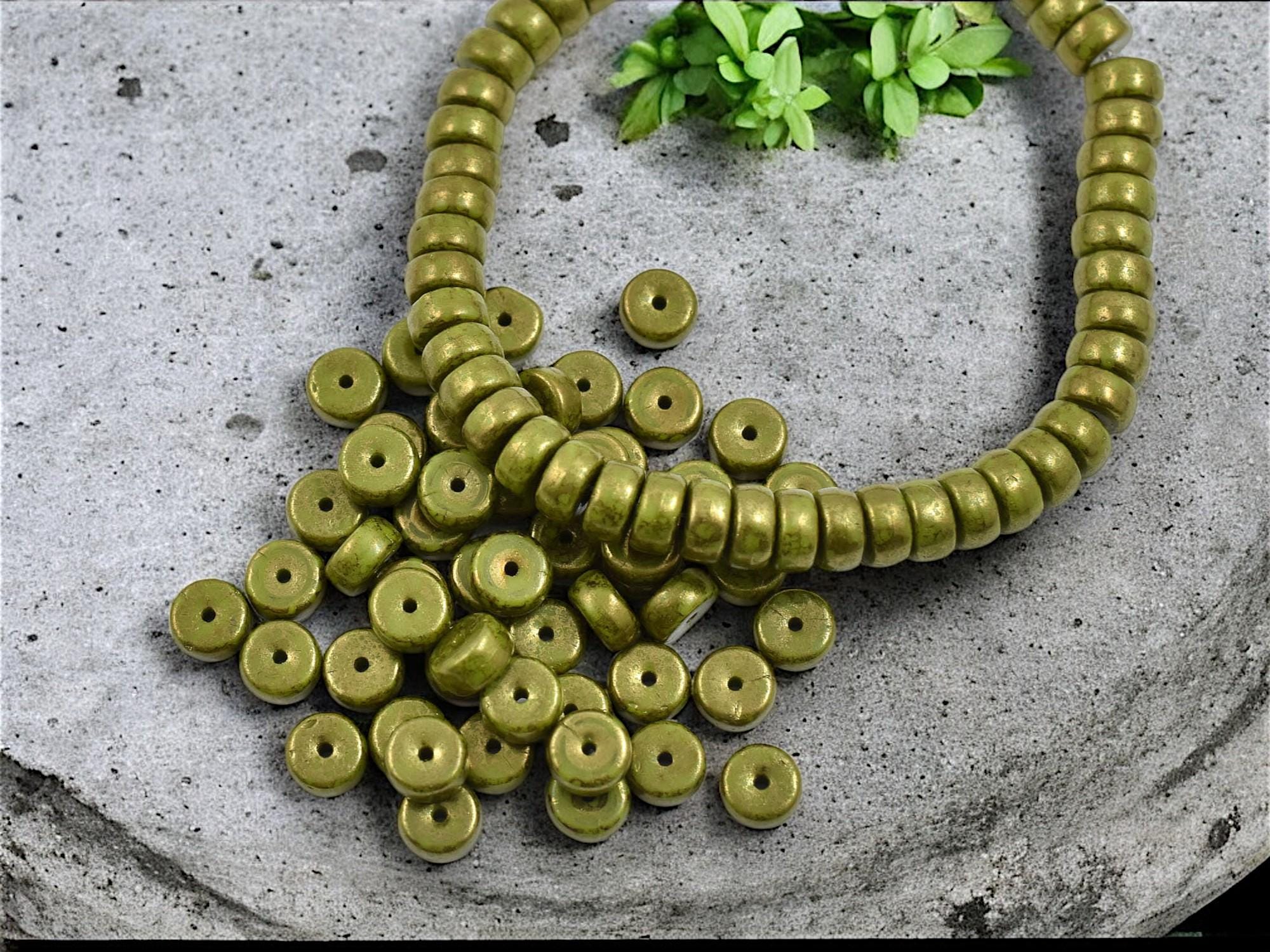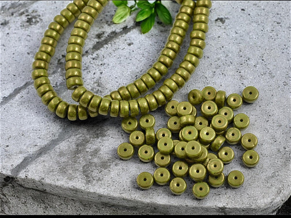 *50* 6x3mm Gold Washed Peridot Heishi Beads