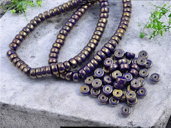 *50* 6x3mm Gold Lustered Opaque Indigo Heishi Beads