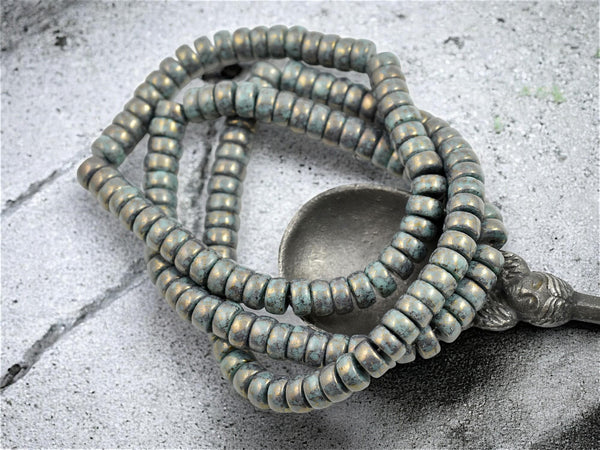 *50* 6x3mm Gold Washed Opaque Persian Turquoise Heishi Beads