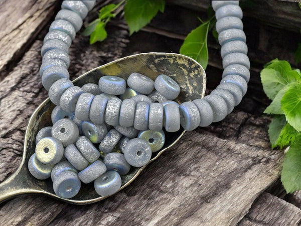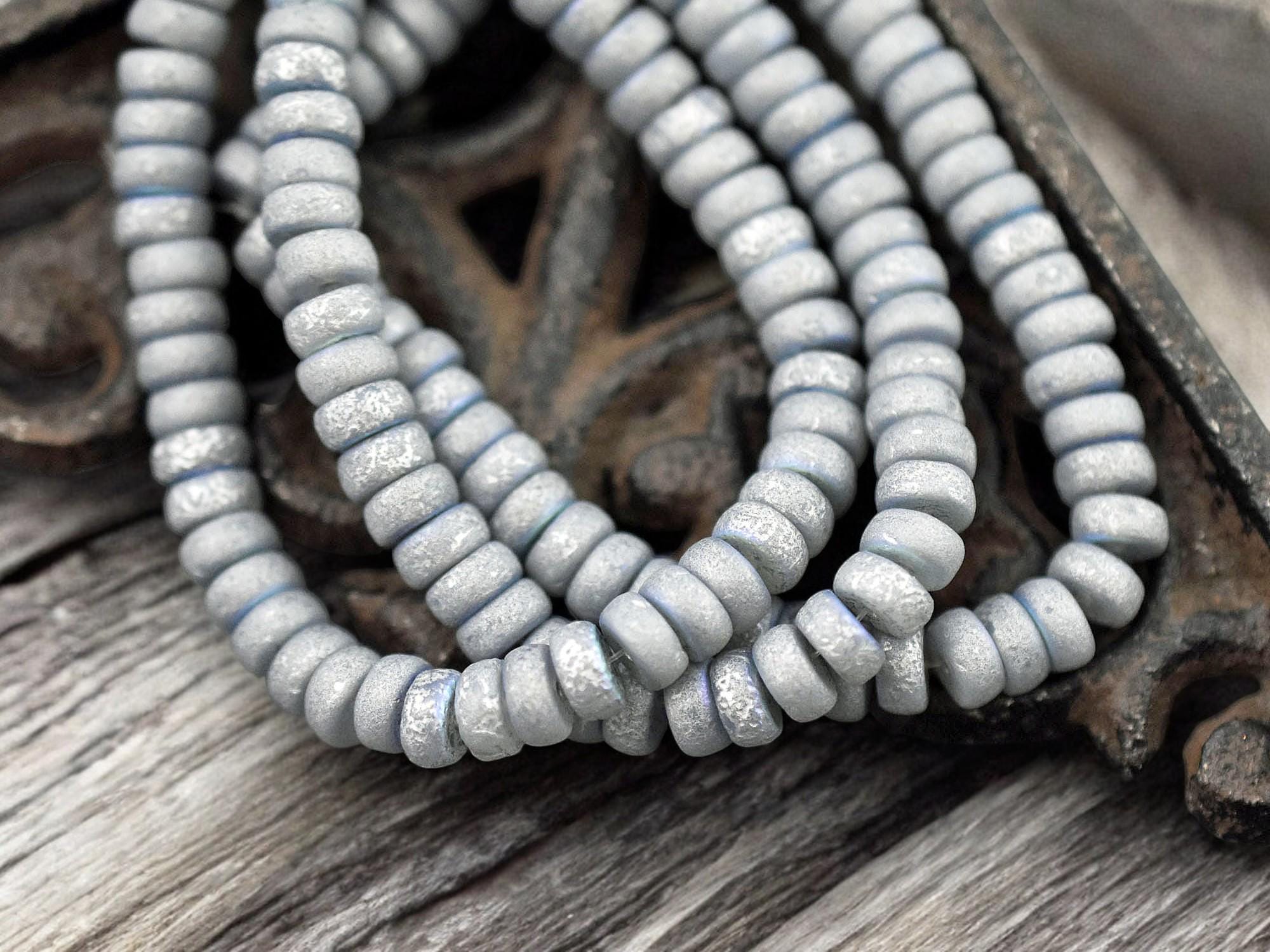 *50* 6x3mm Silver Washed Etched Grey AB Heishi Rondelle Beads