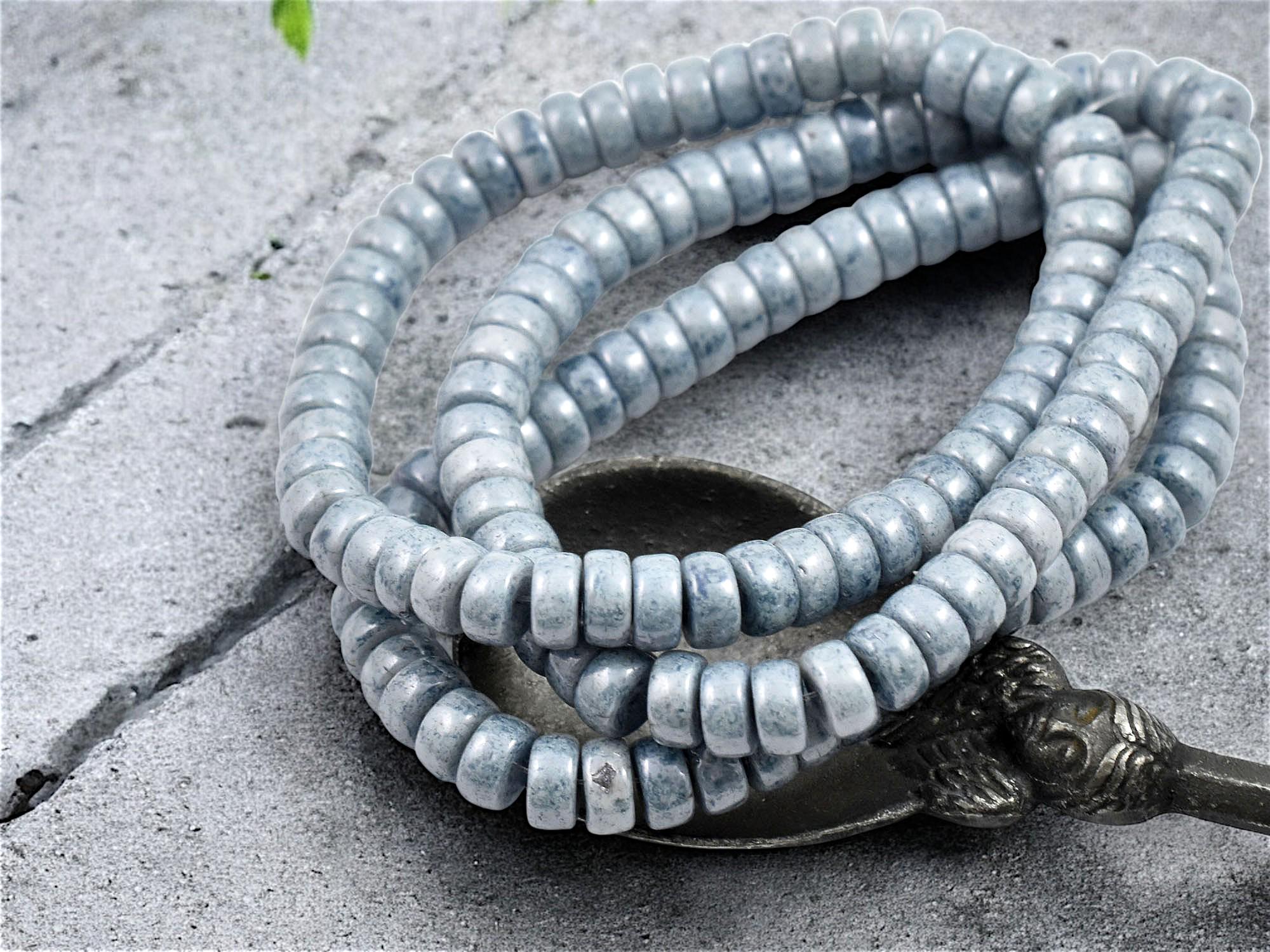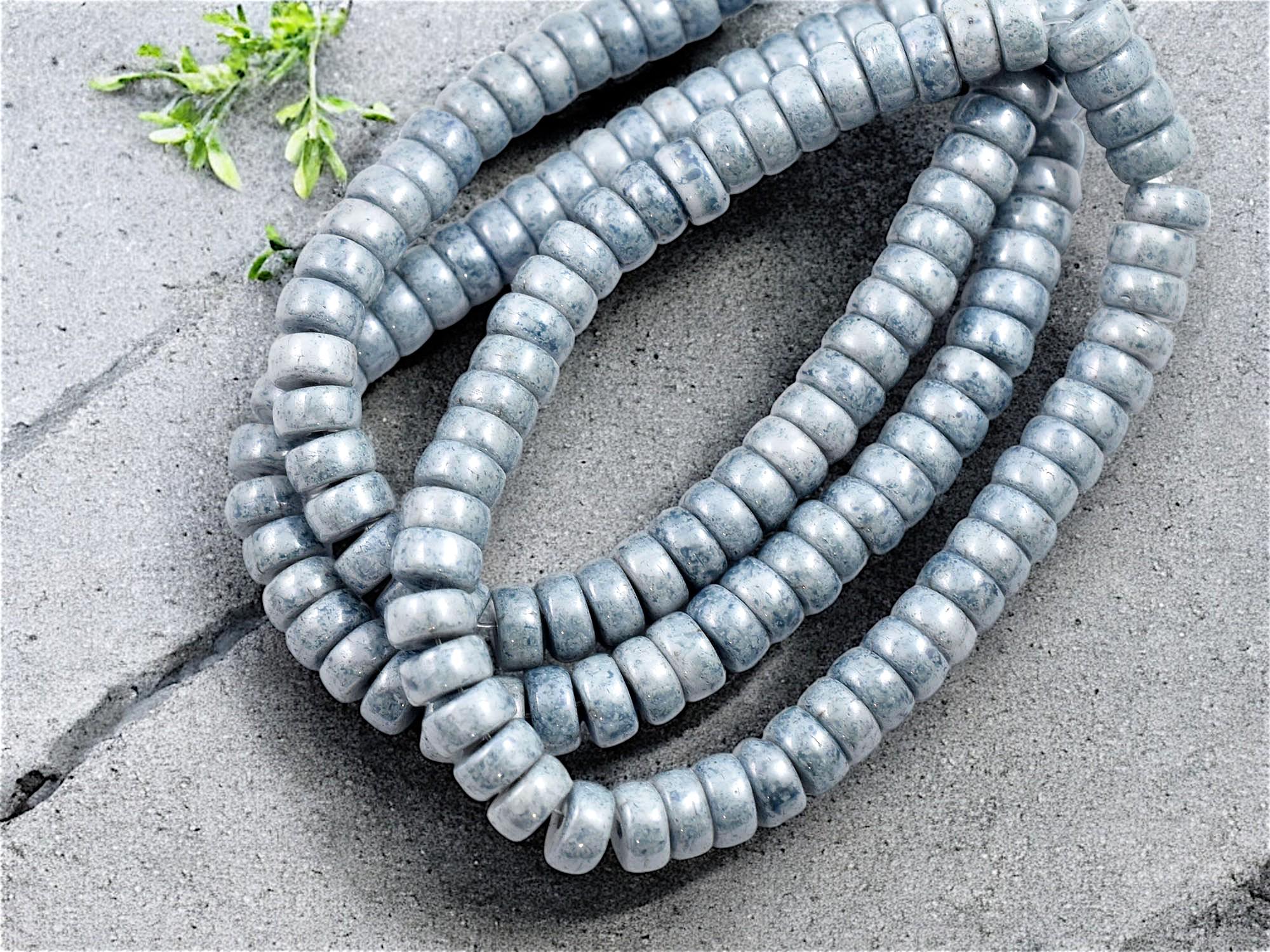 *50* 6x3mm Blue Picasso Washed Pale Blue Heishi Beads