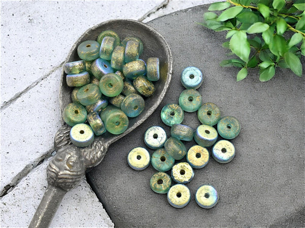 *50* 6x3mm Gold Washed Etched Sky Blue AB Heishi Beads