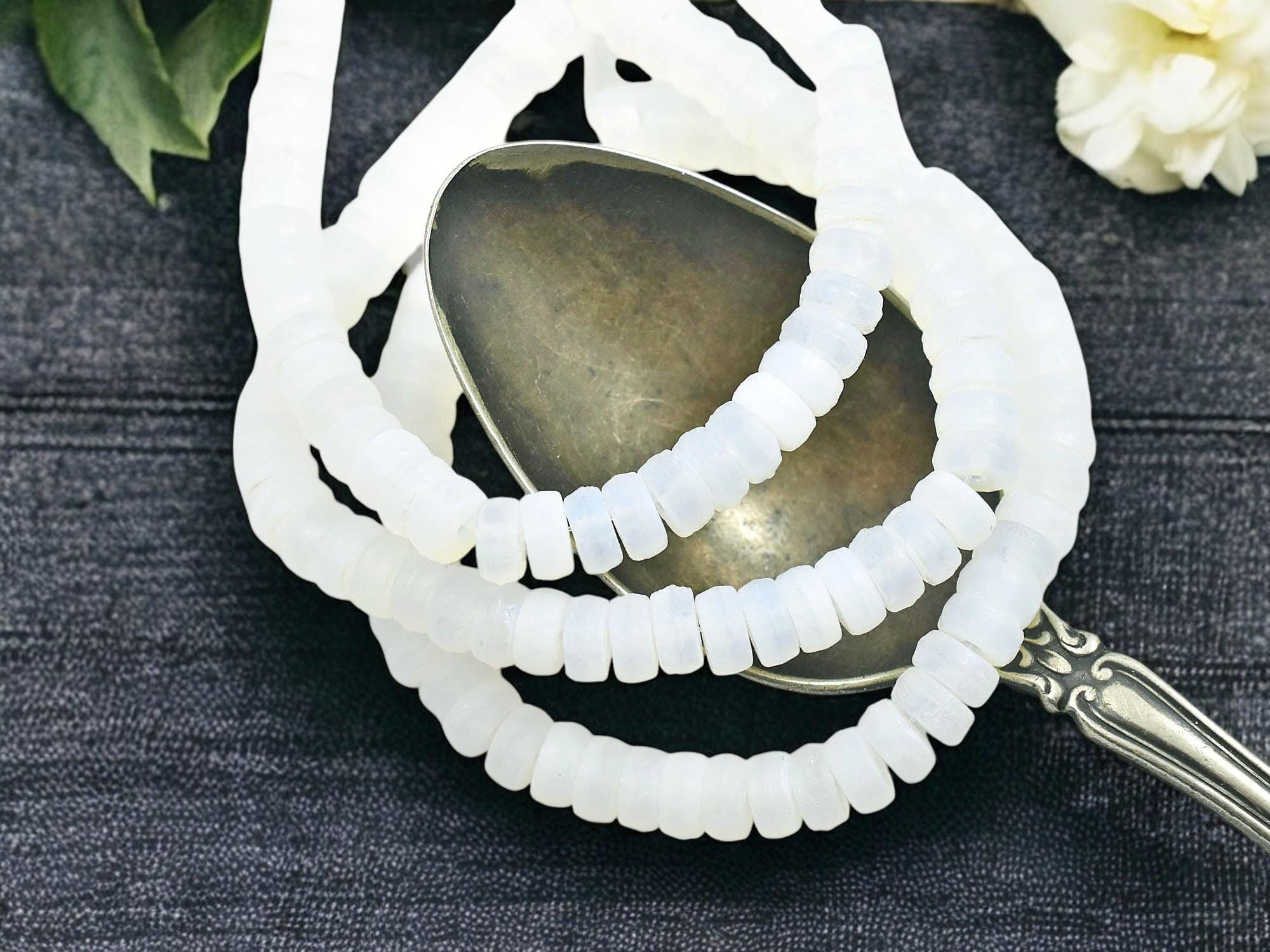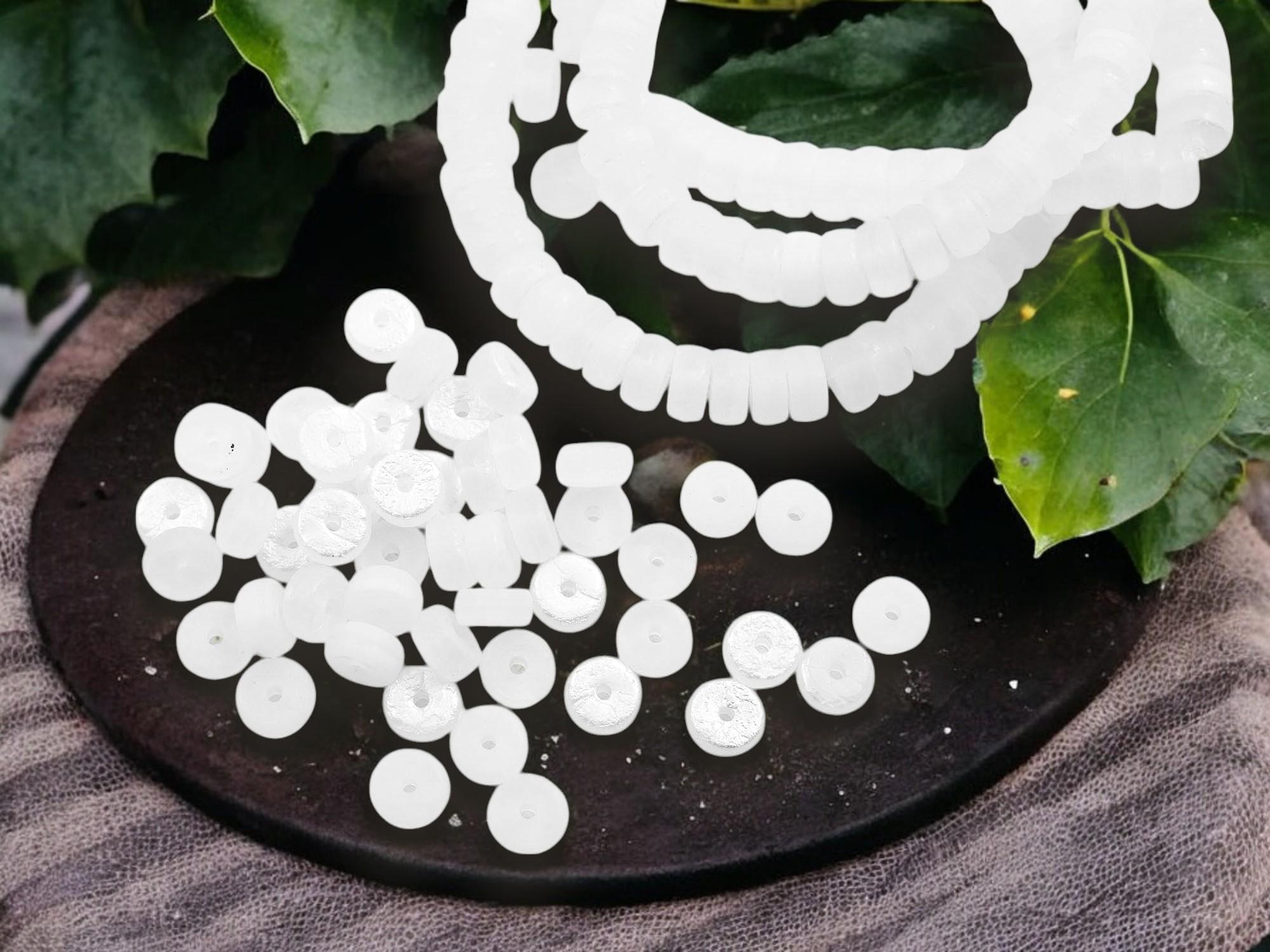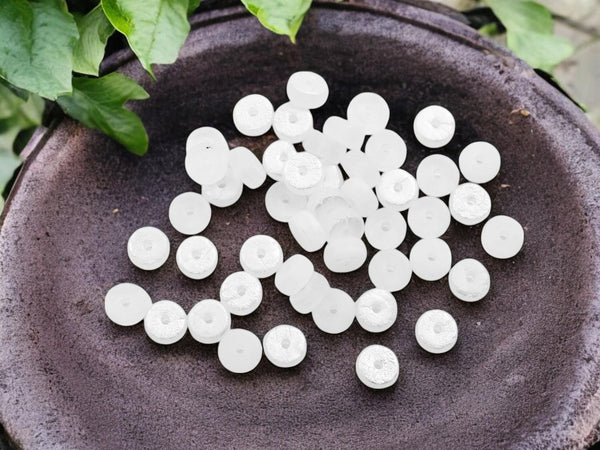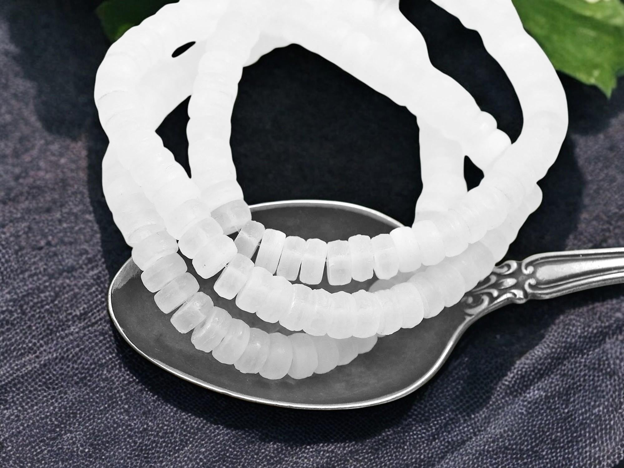 *50* 6x3mm Etched Matte White Opaline AB Heishi Beads