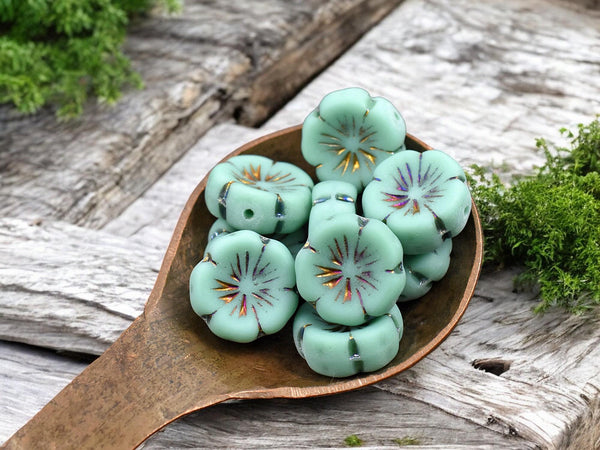 *10* 14mm Metallic Volcano Washed Matte Turquoise Hawaiian Flower Beads