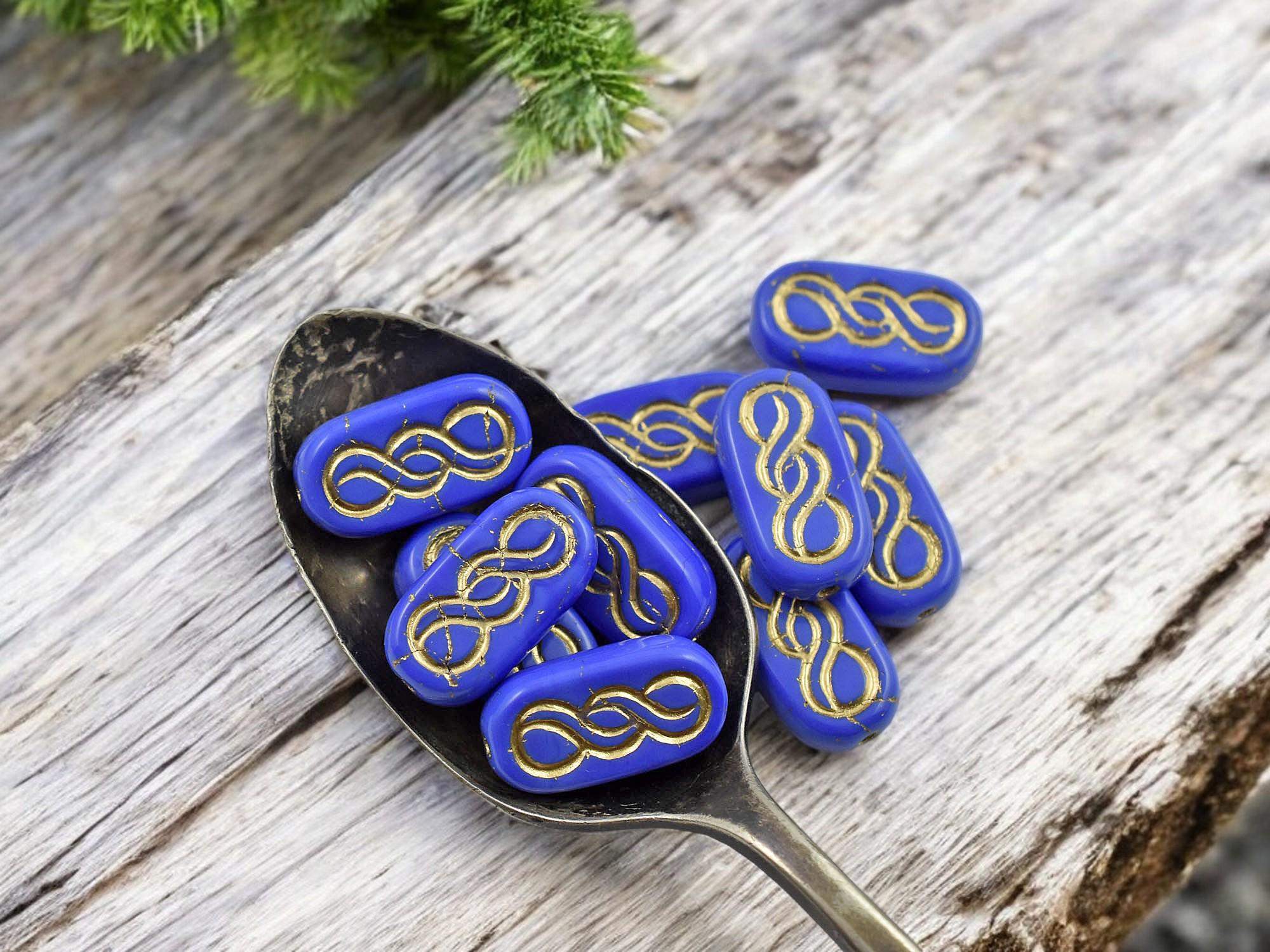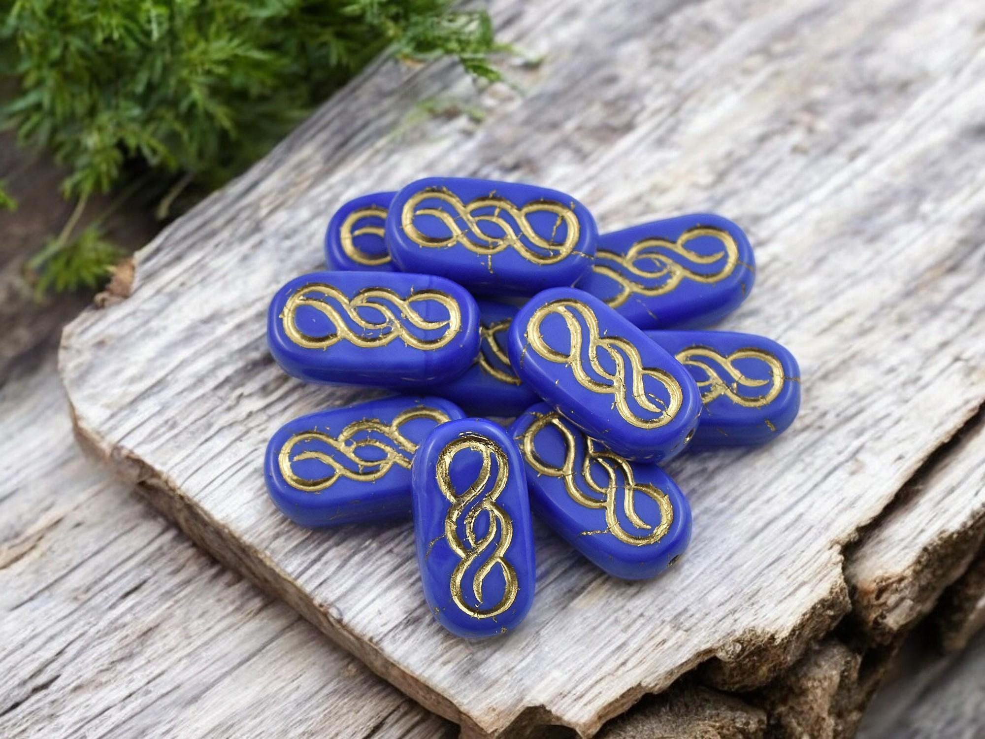 *10* 18x9mm Bronze Washed Opaque Royal Blue Infinity Oval Beads