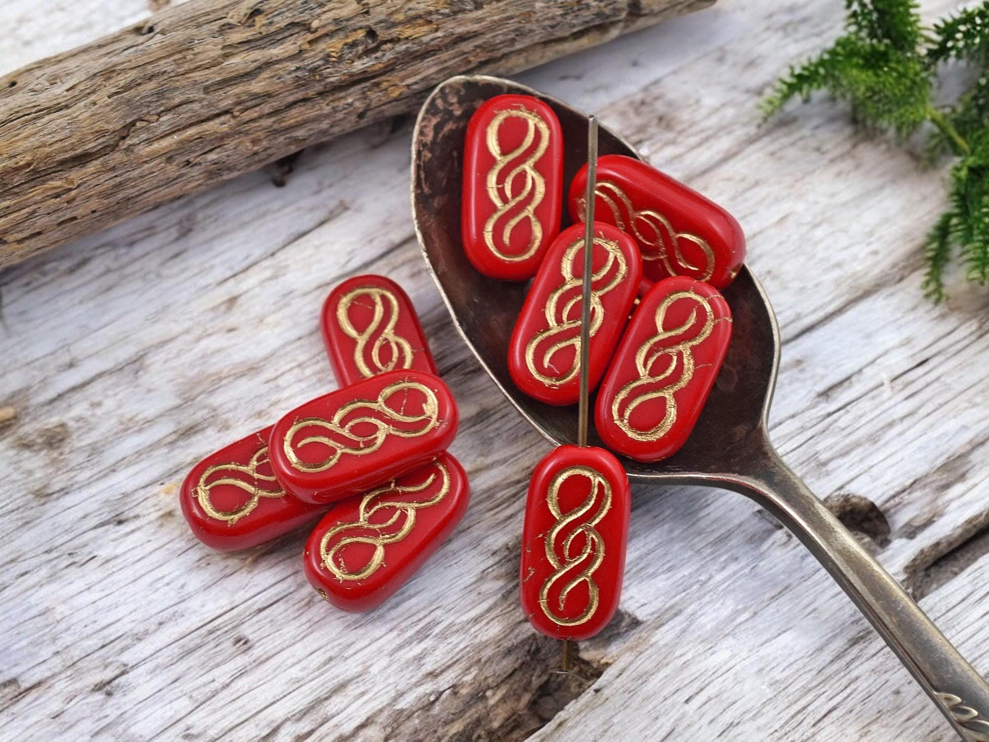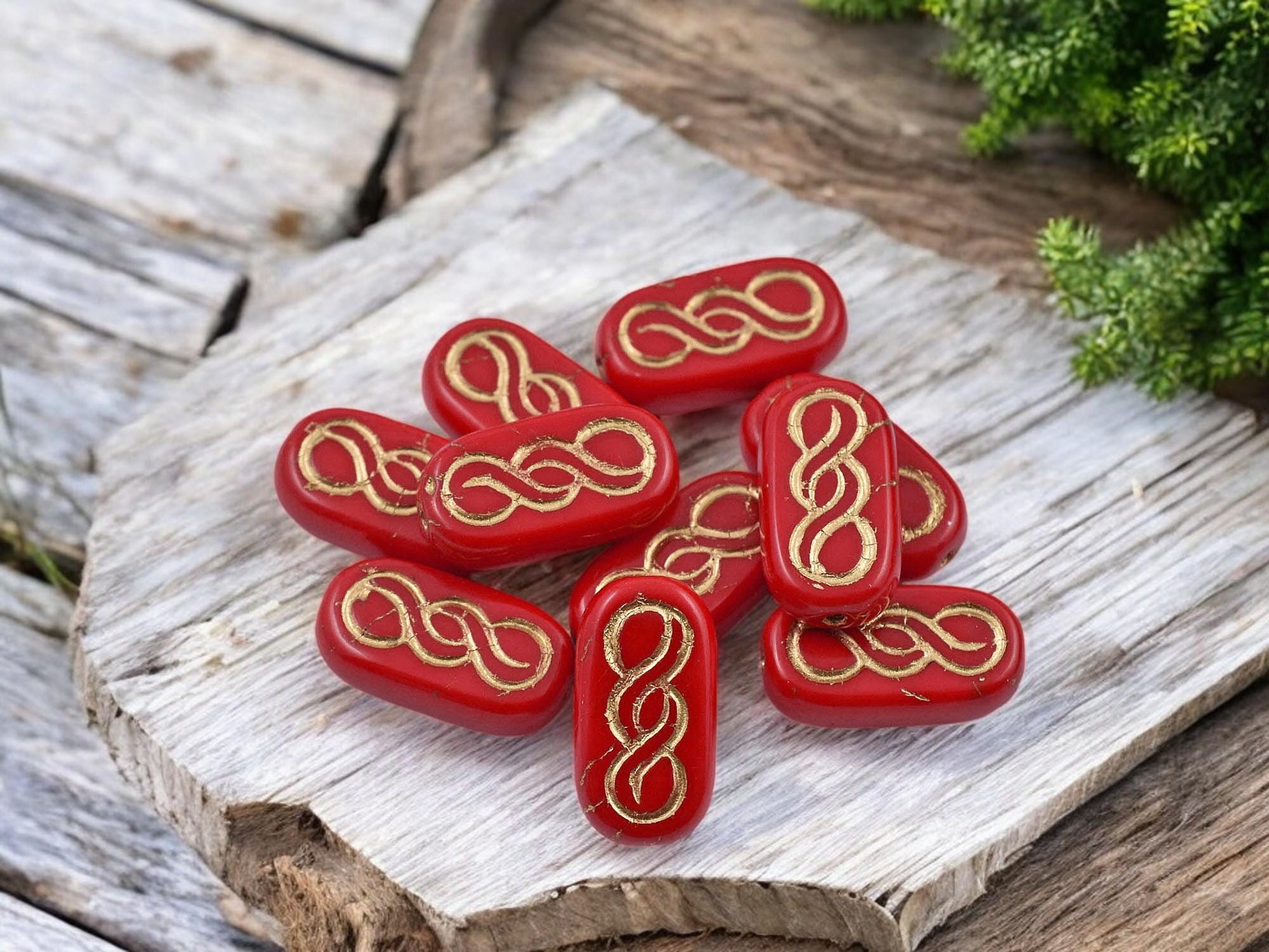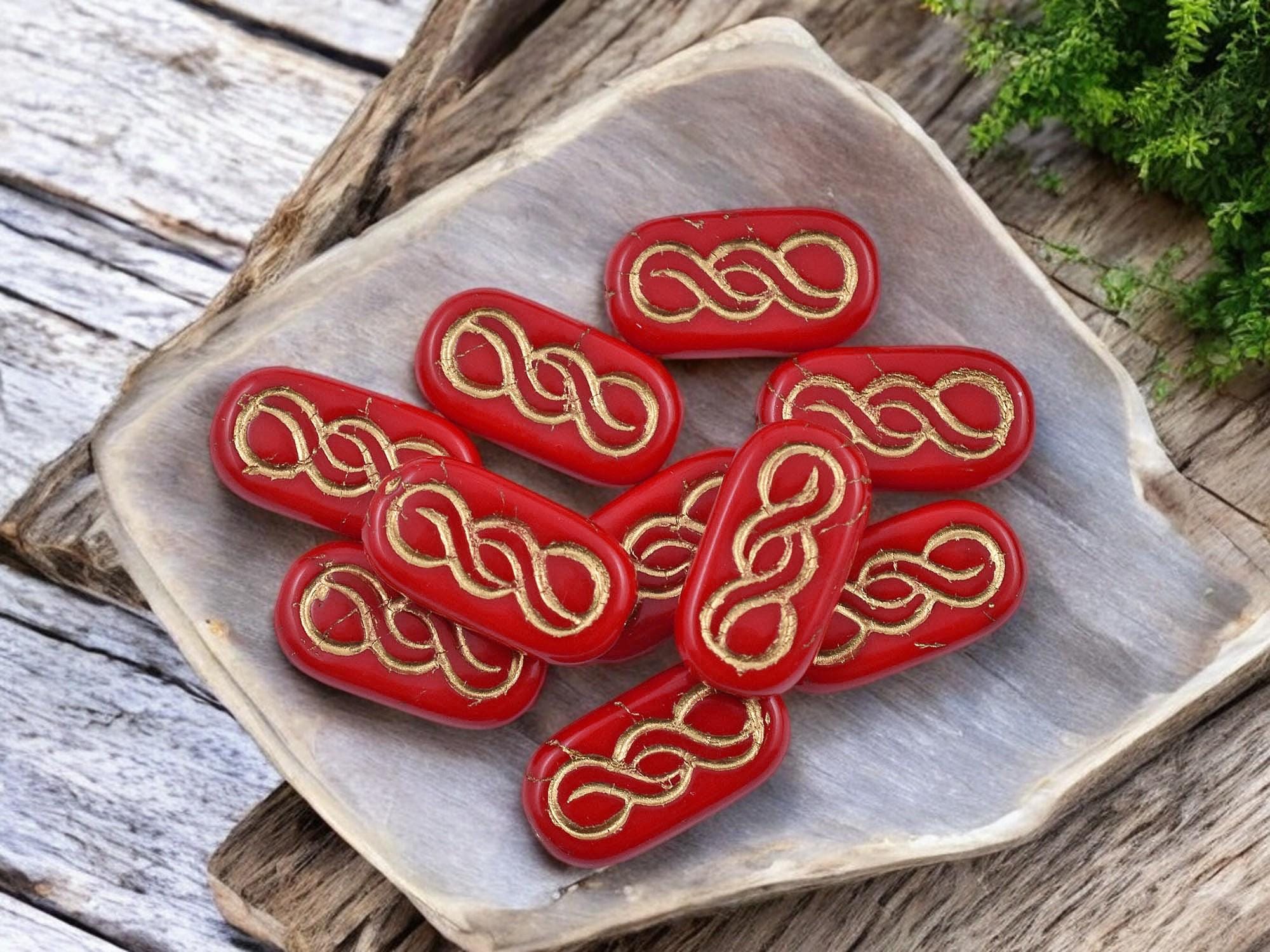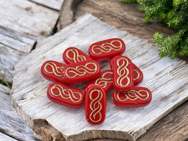 *10* 18x9mm Bronze Washed Opaque Red Infinity Oval Beads