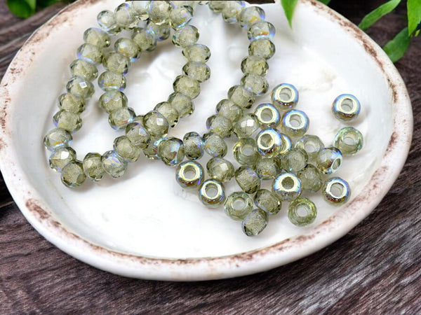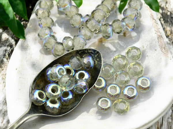 *25* 5x8mm Black Diamond AB Faceted Large Hole Rondelle Roller Beads