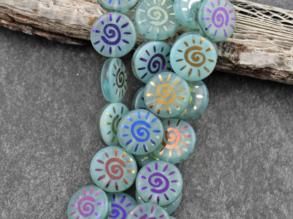 ♥ Type/Shape: Czech glass coin beads with laser etched sun design (both sides of bead)