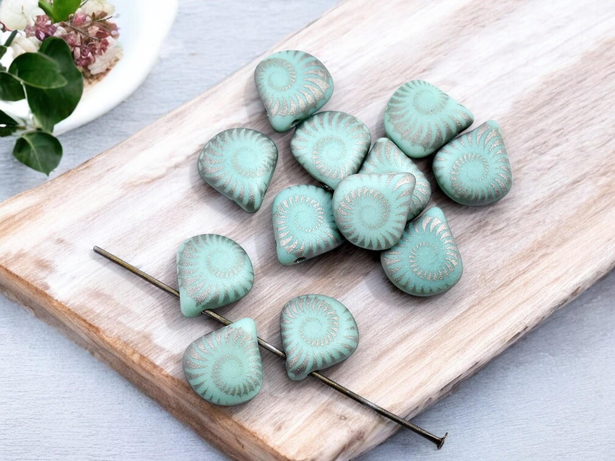 *12* 12x11mm Matte Turquoise Laser Etched Briolette Beads