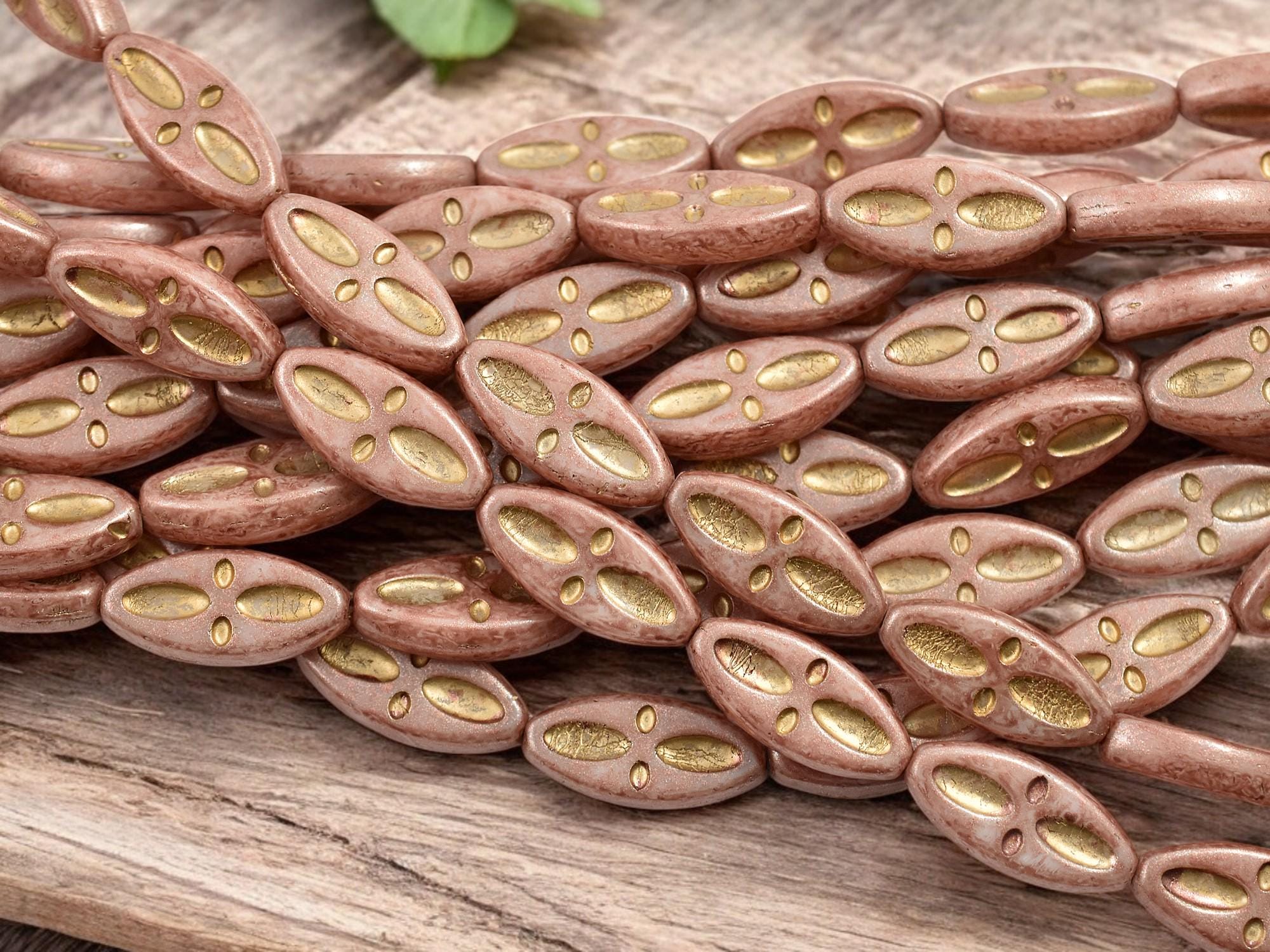 ♥ Type/Shape: Czech pressed glass marquise oval beads w/cross design