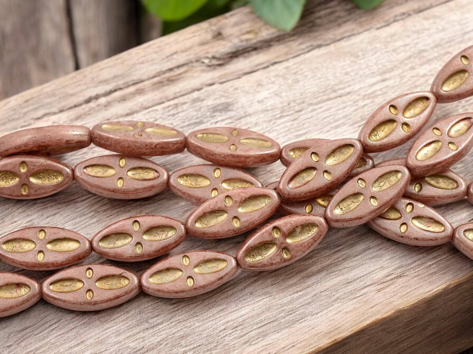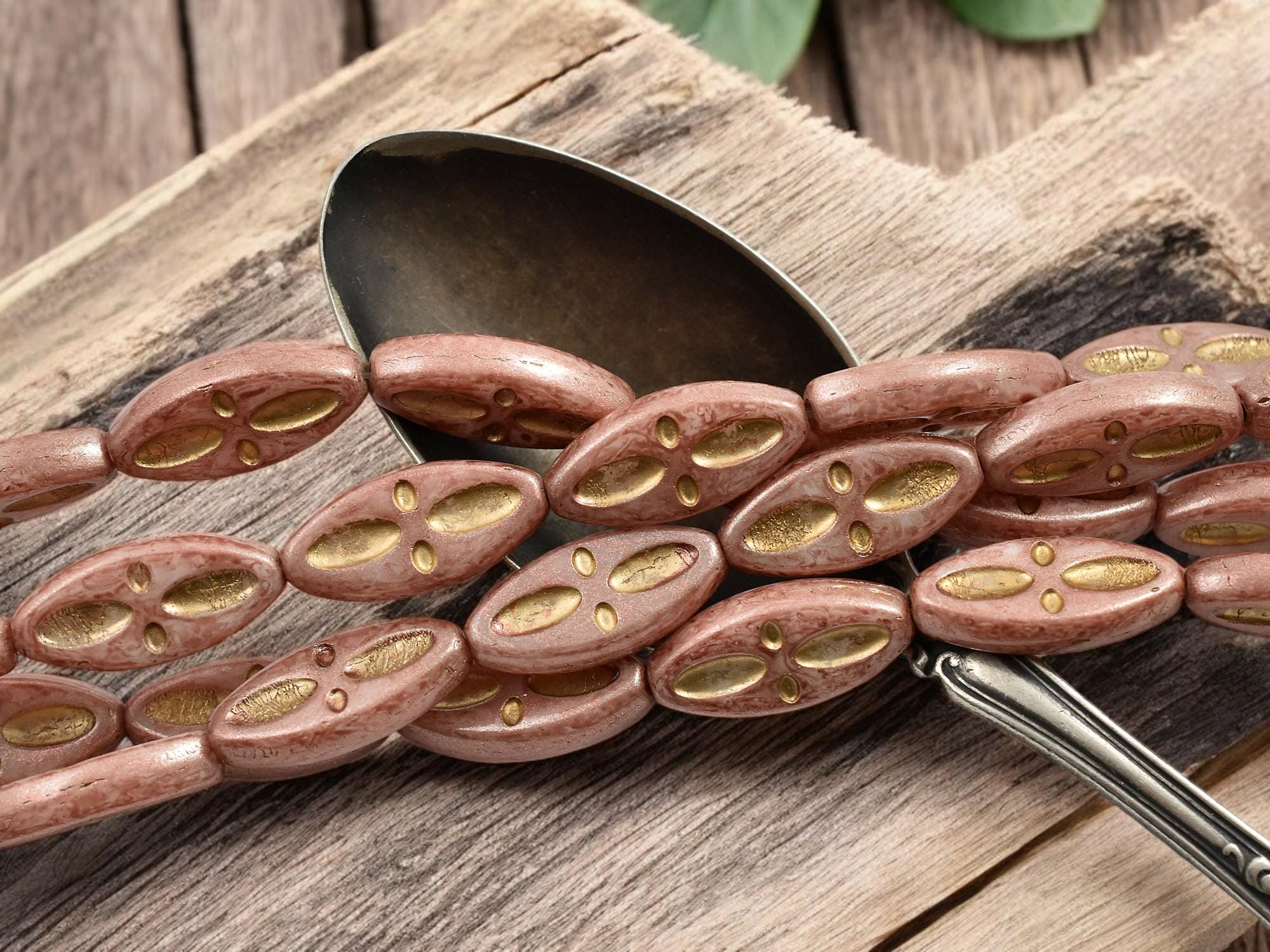 *10* 20x9mm Bronze Washed Vintage Pink Marquise Oval Beads
